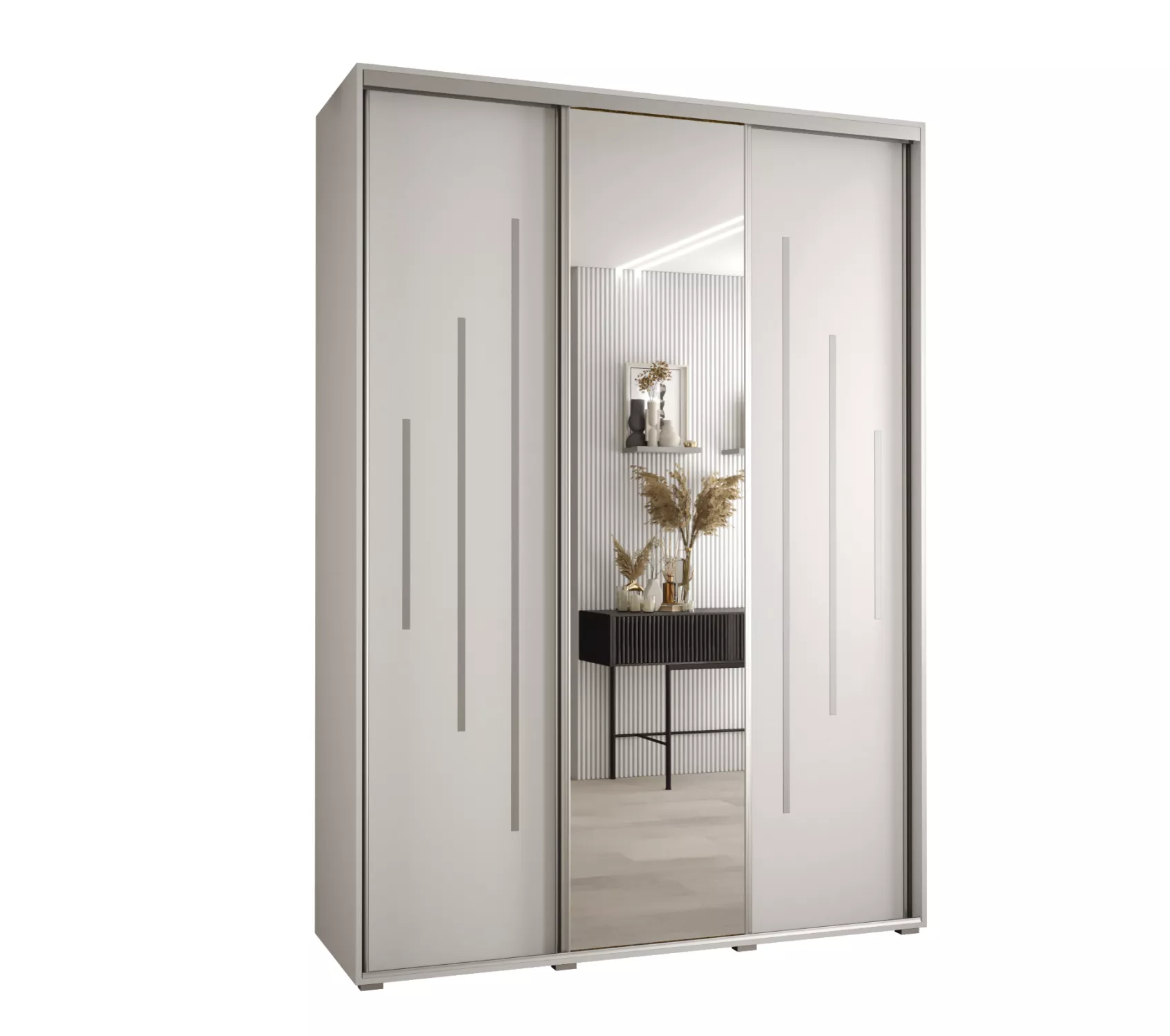 Šatní skříň YVONA 13 - 180/45 cm, bílá / stříbrná