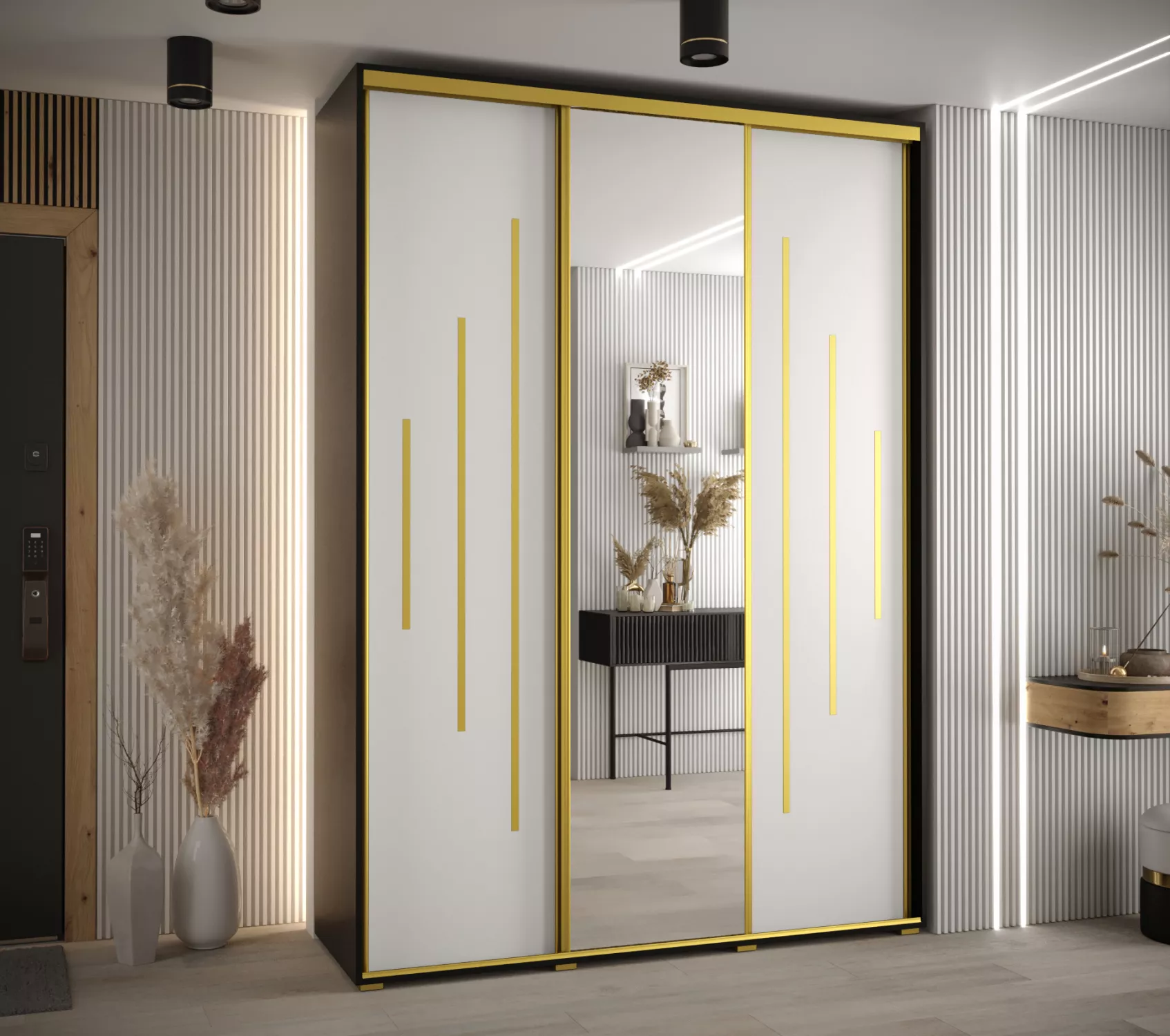 Šatní skříň YVONA 13 - 180/45 cm, černá / bílá / zlatá