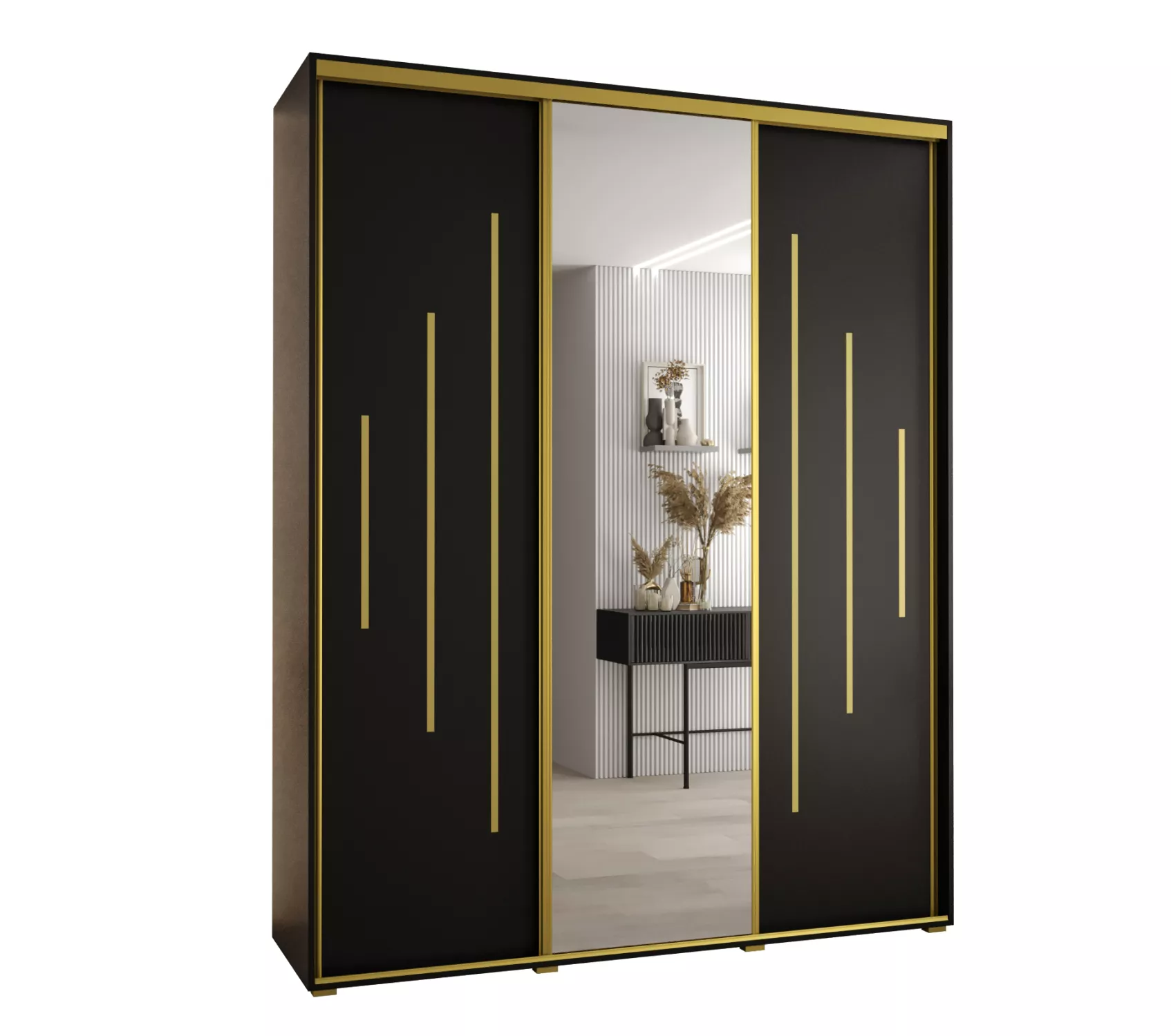 Šatní skříň YVONA 13 - 190/45 cm, černá / zlatá