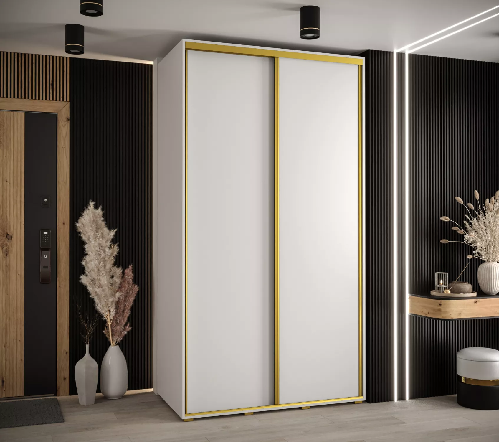 Šatní skříň YVONA 1 - 130/60 cm, bílá / zlatá