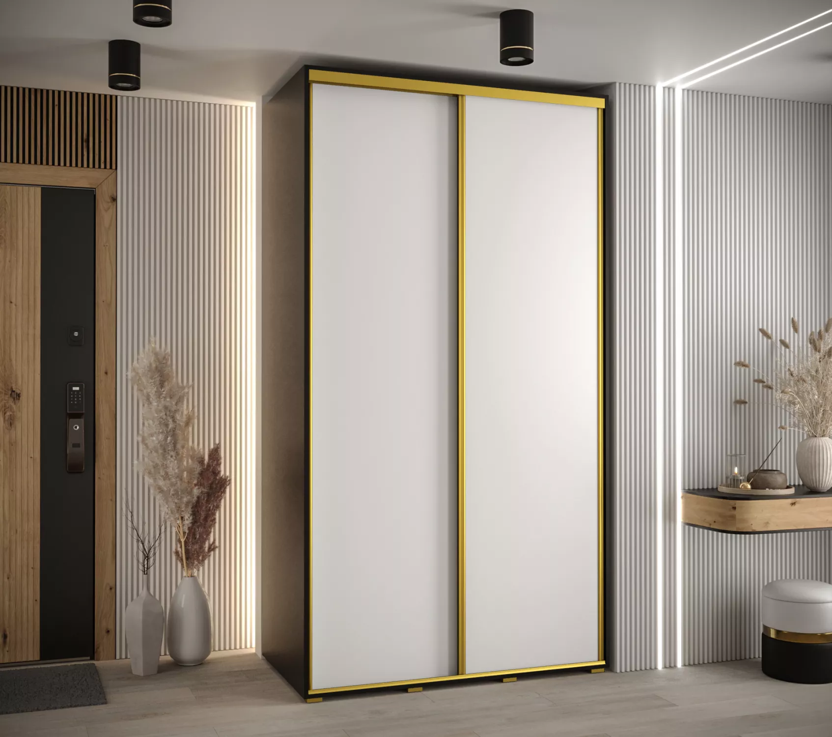 Šatní skříň YVONA 1 - 140/60 cm, černá / bílá / zlatá