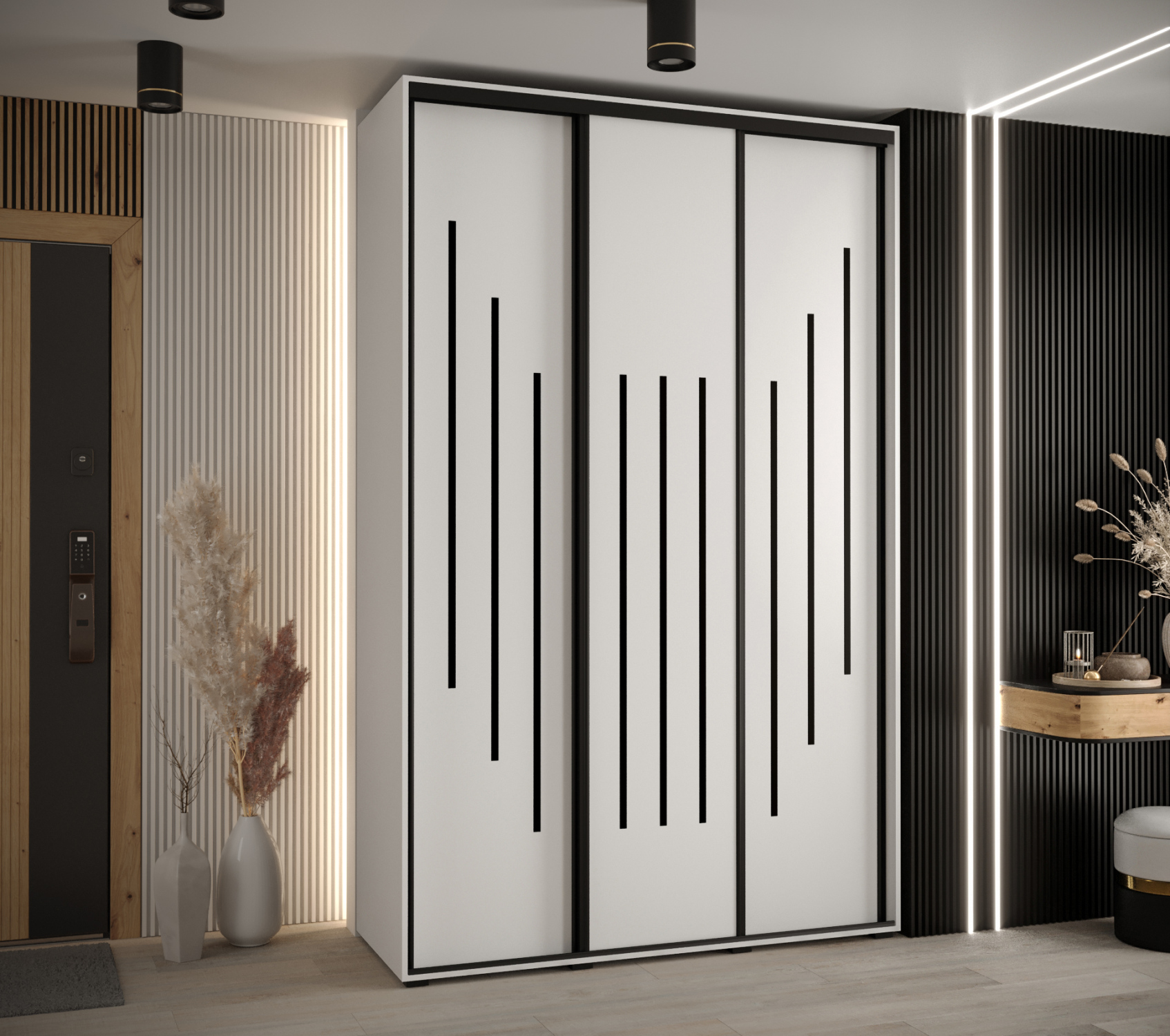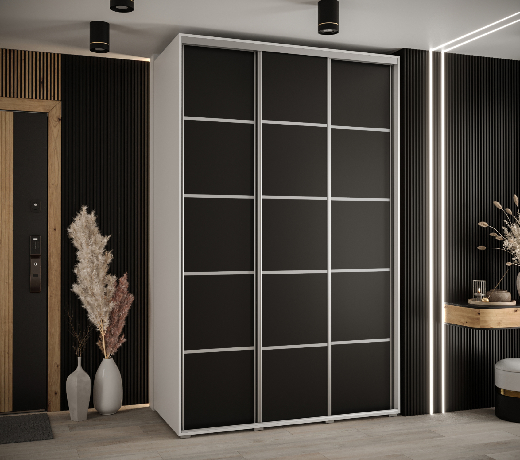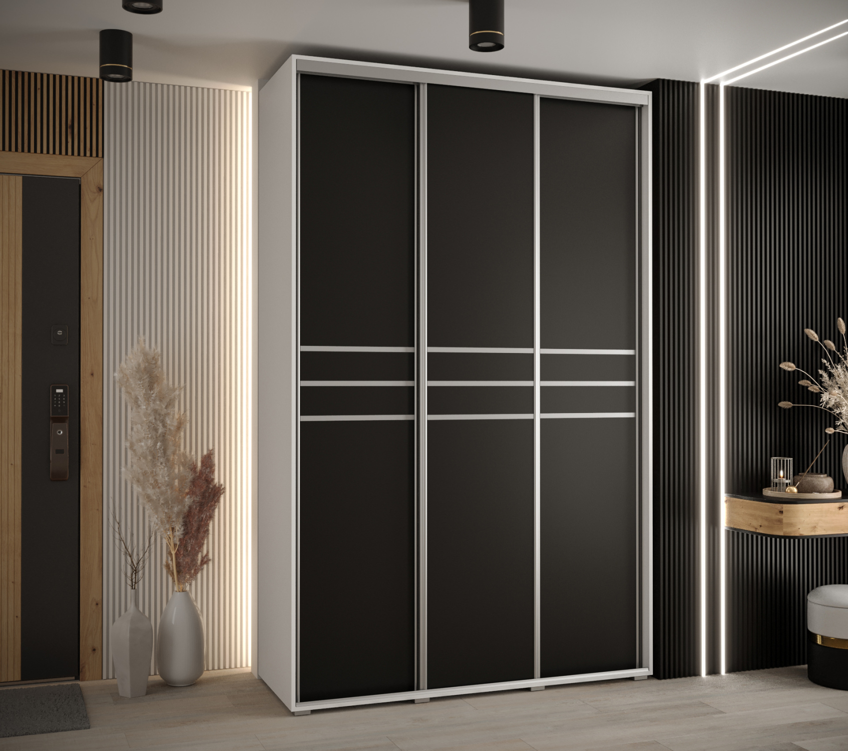 Šatní skříň YVONA 1 - 150/60 cm, černá / bílá / černá