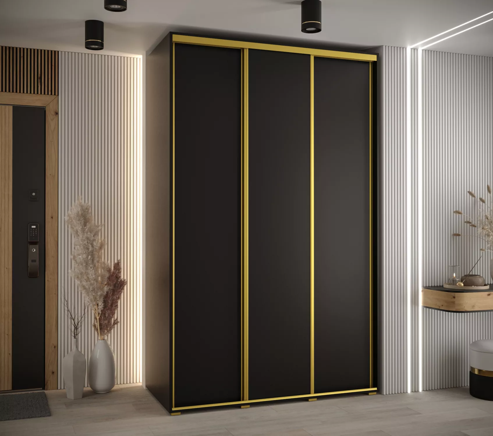 Šatní skříň YVONA 1 - 160/60 cm, černá / zlatá