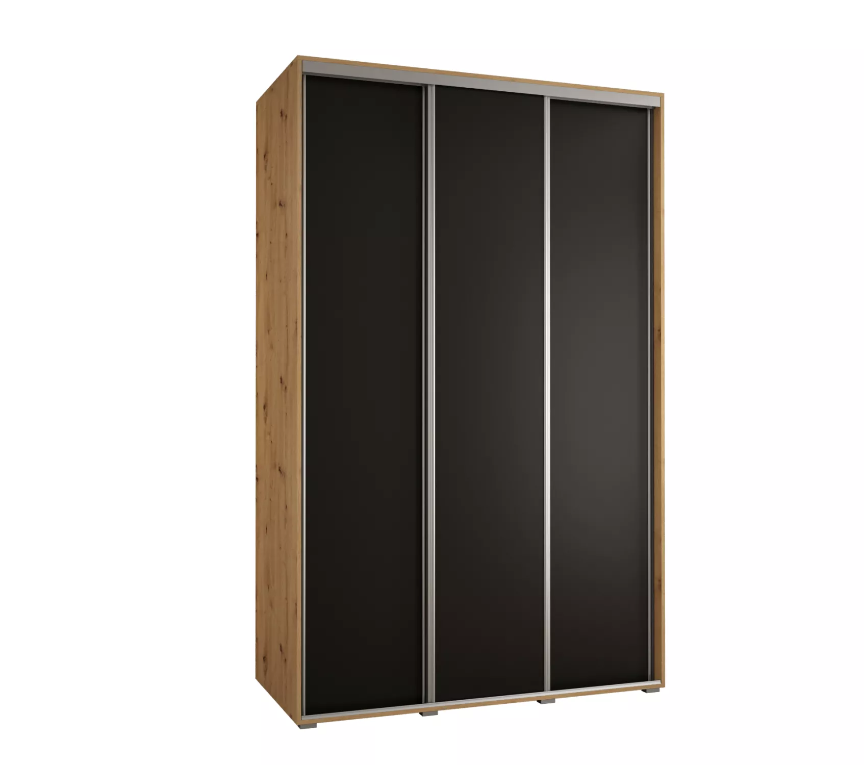 Šatní skříň YVONA 1 - 160/60 cm, dub artisan / černá / stříbrná