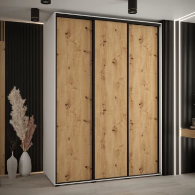 Šatní skříň YVONA 1 - 170/60 cm, bílá / dub artisan / černá