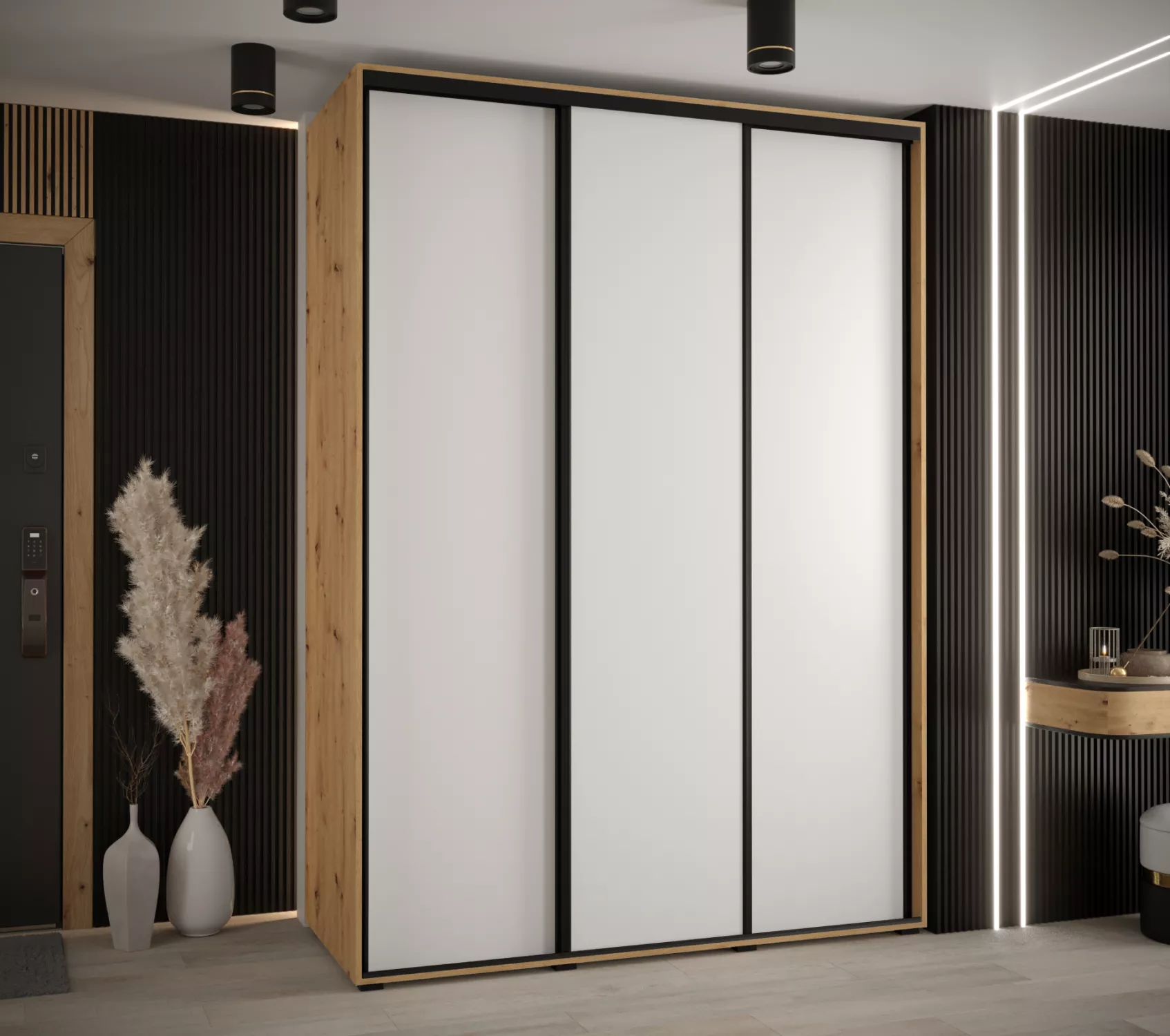 Šatní skříň YVONA 1 - 170/60 cm, dub artisan / bílá / černá