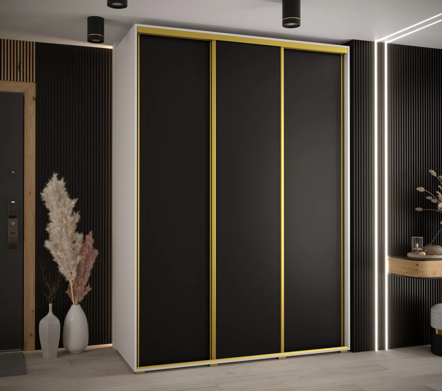 Šatní skříň YVONA 1 - 180/60 cm, bílá / černá / zlatá