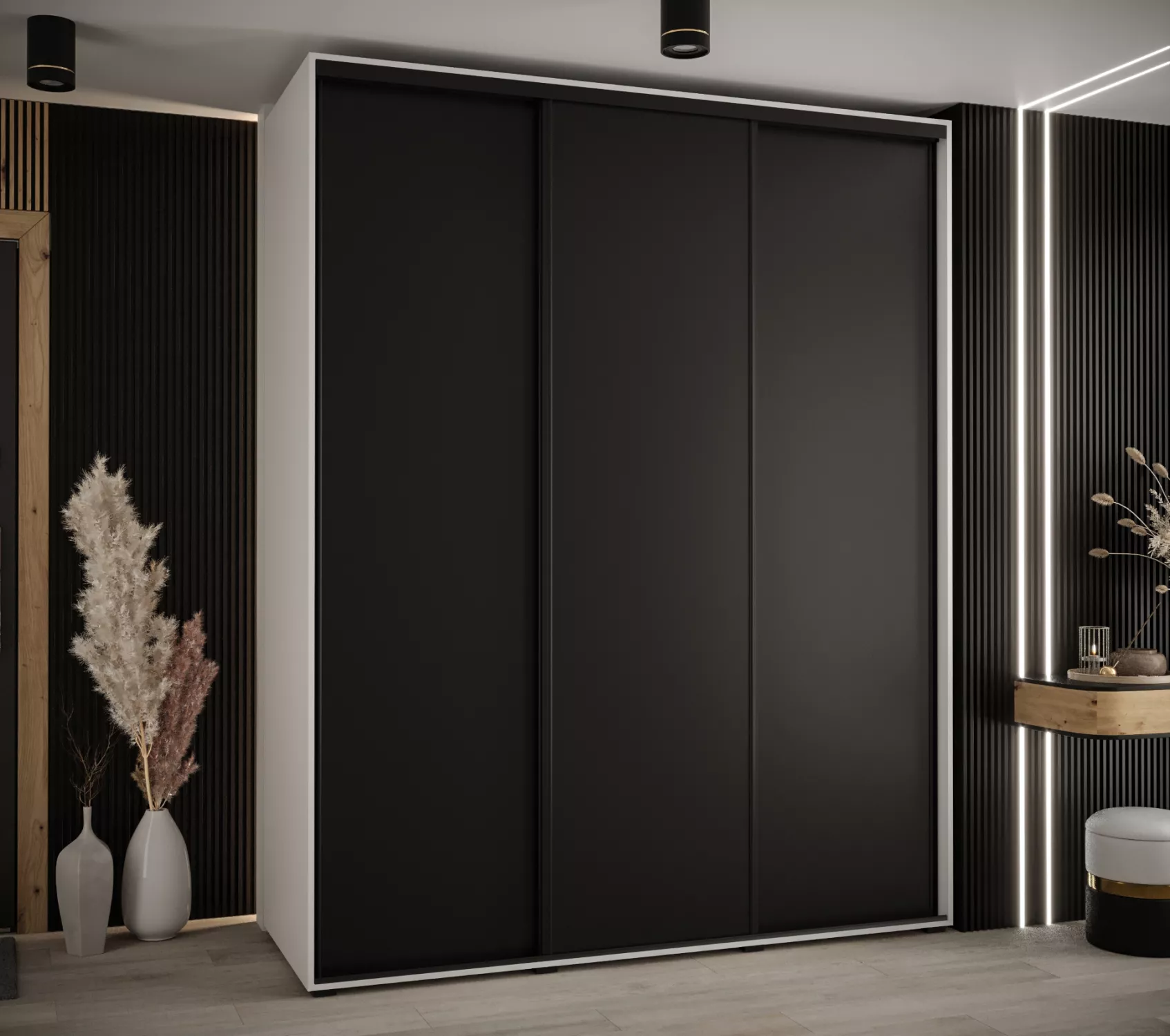 Šatní skříň YVONA 1 - 190/60 cm, bílá / černá / černá