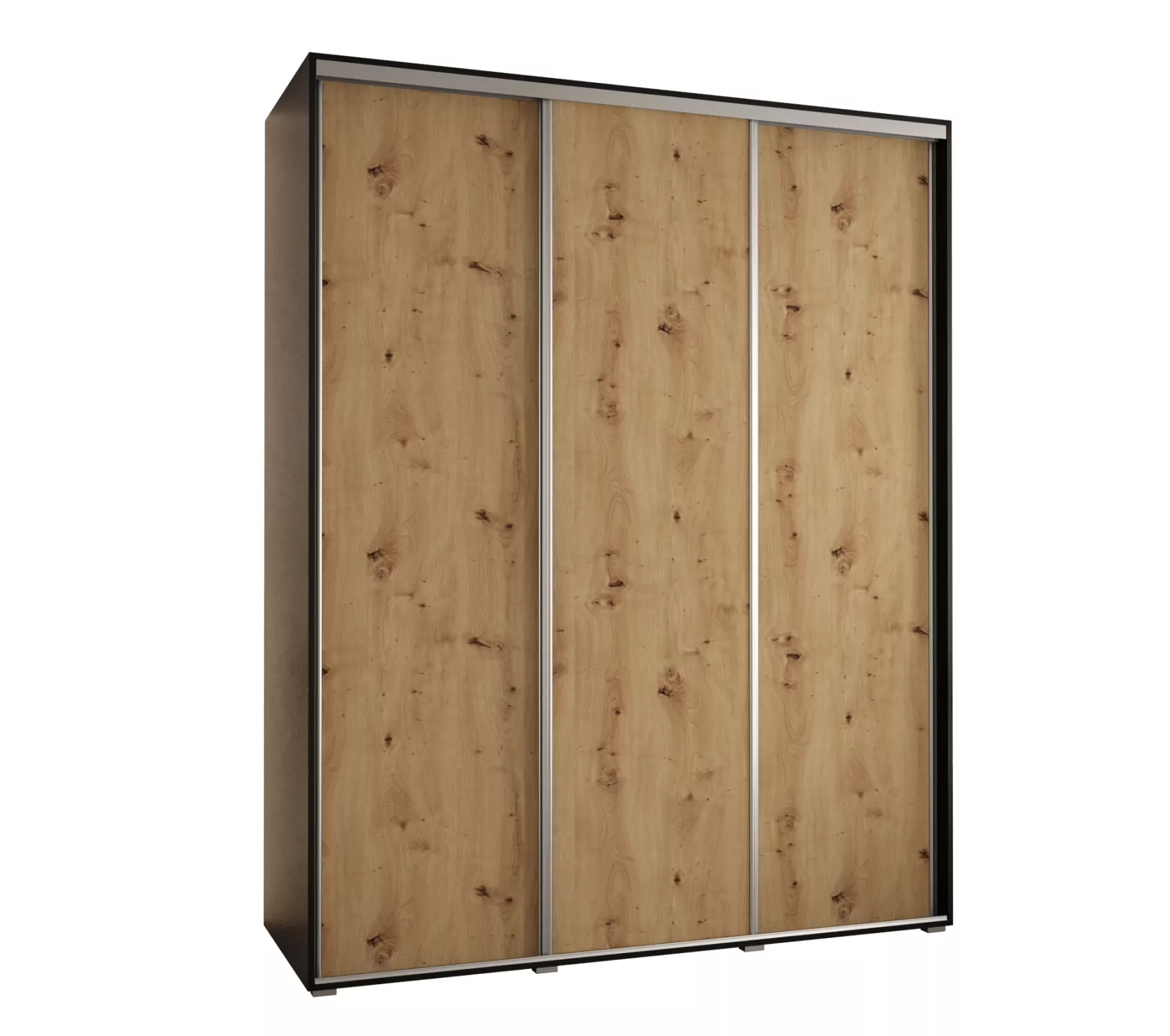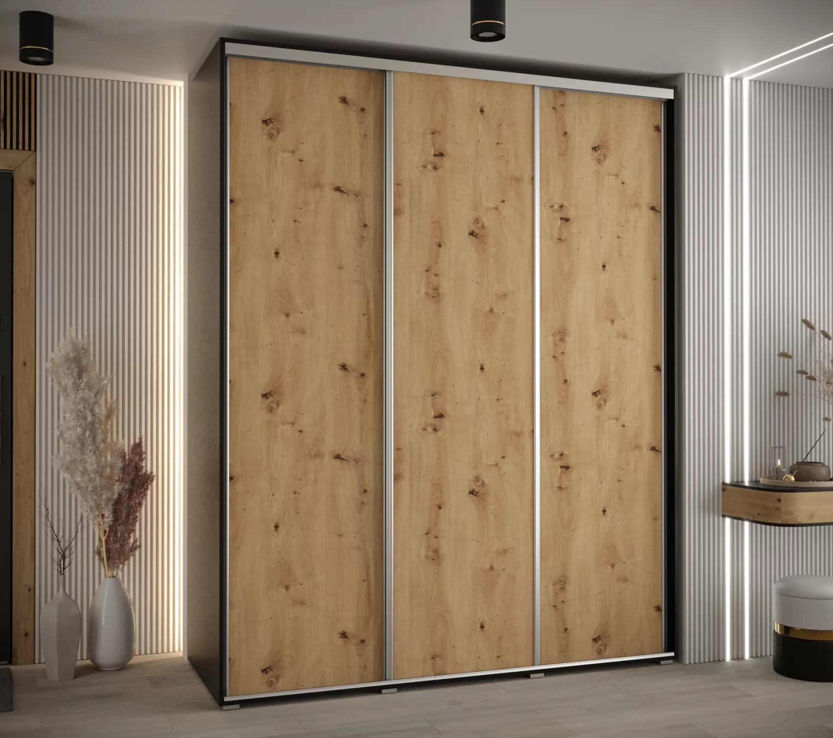 Šatní skříň YVONA 1 - 190/60 cm, černá / dub artisan / stříbrná