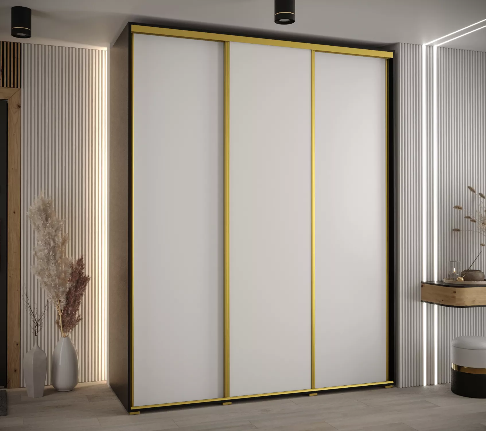 Šatní skříň YVONA 1 - 200/60 cm, černá / bílá / zlatá