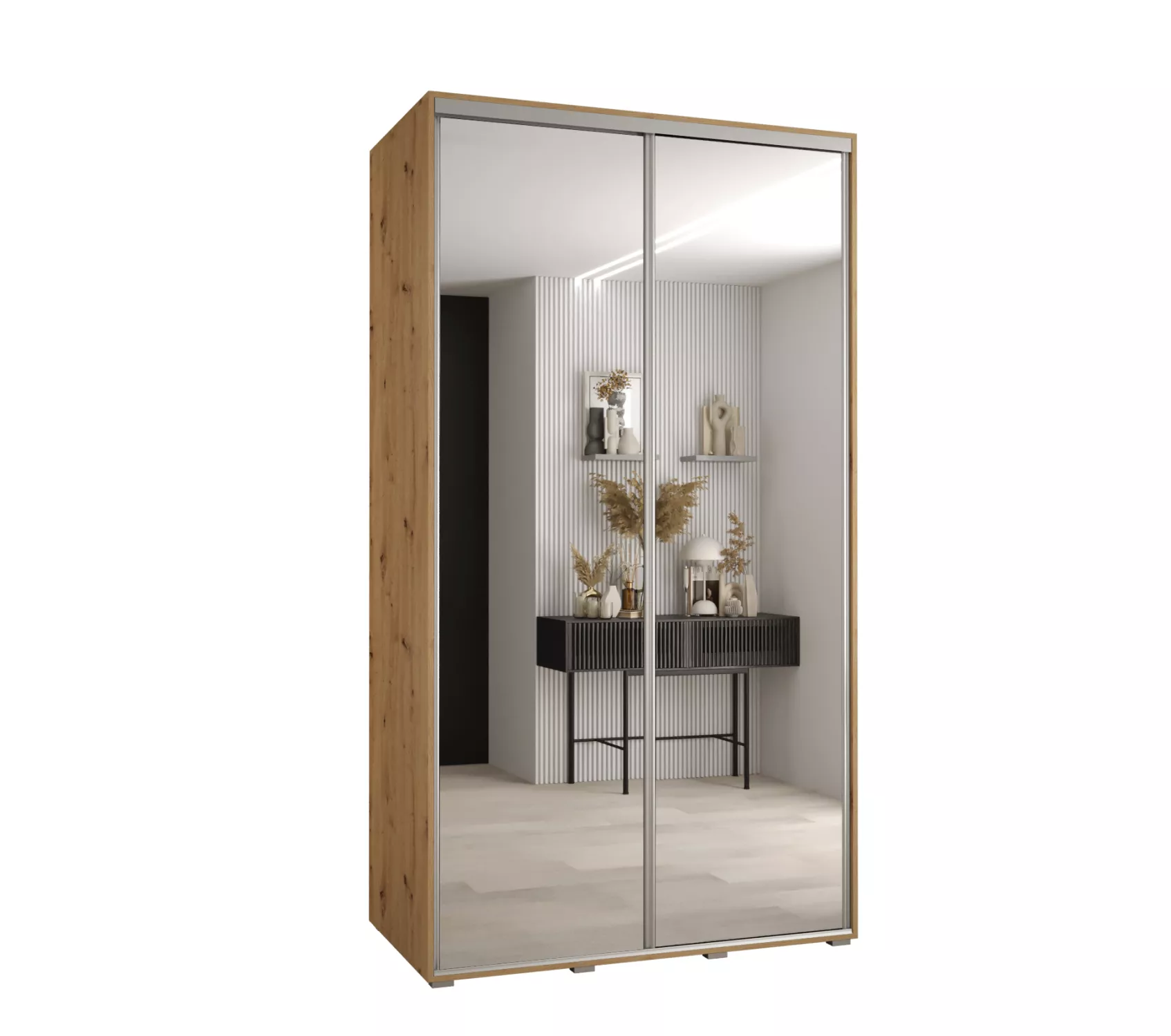 Šatní skříň YVONA 2 - 140/60 cm, dub artisan / stříbrná