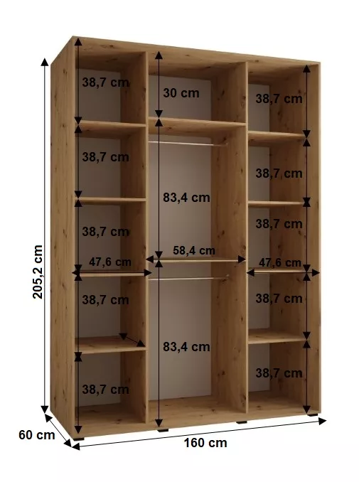 Šatní skříň YVONA 2 - 160/60 cm, dub artisan / černá