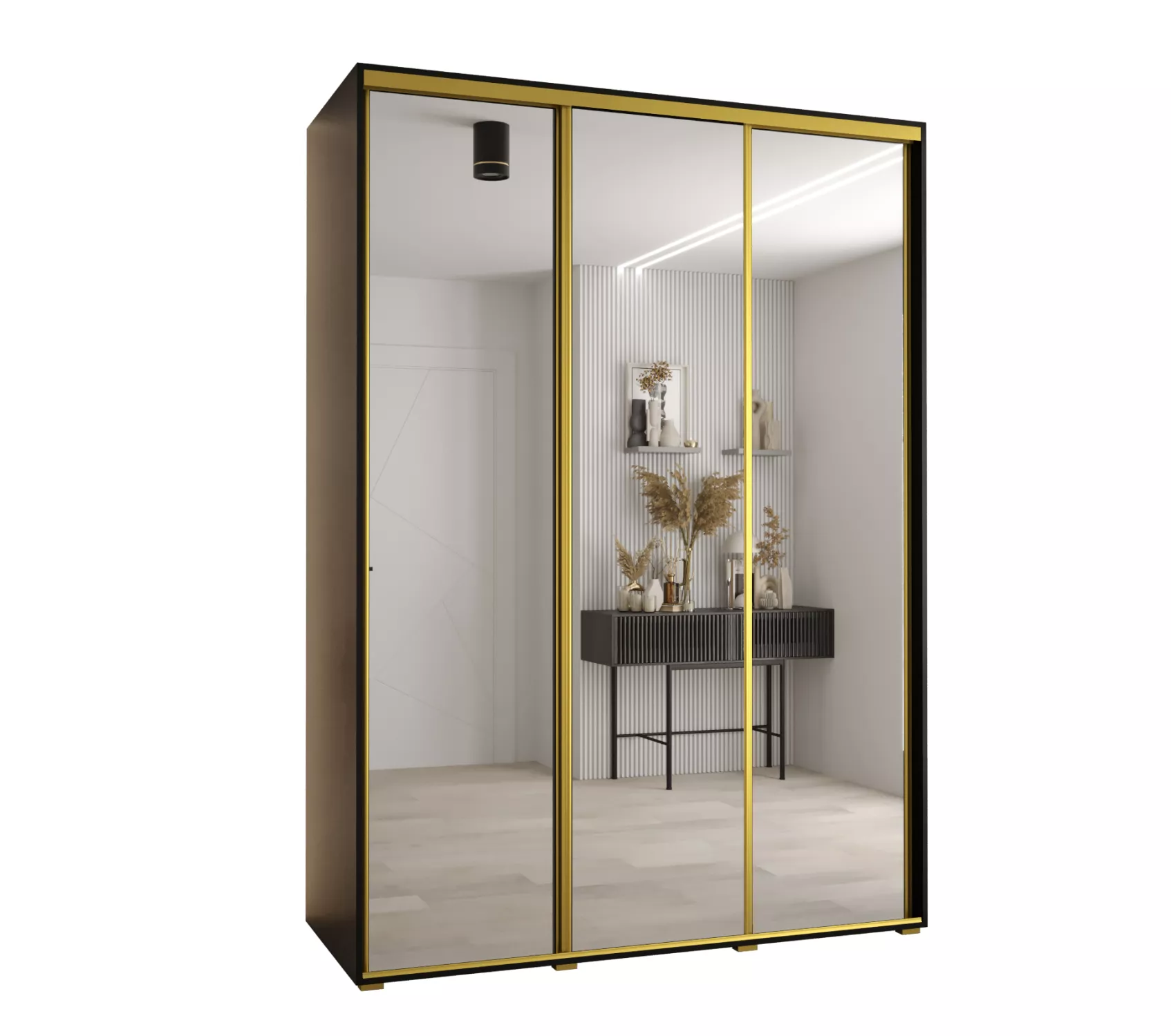 Šatní skříň YVONA 2 - 170/60 cm, černá / zlatá
