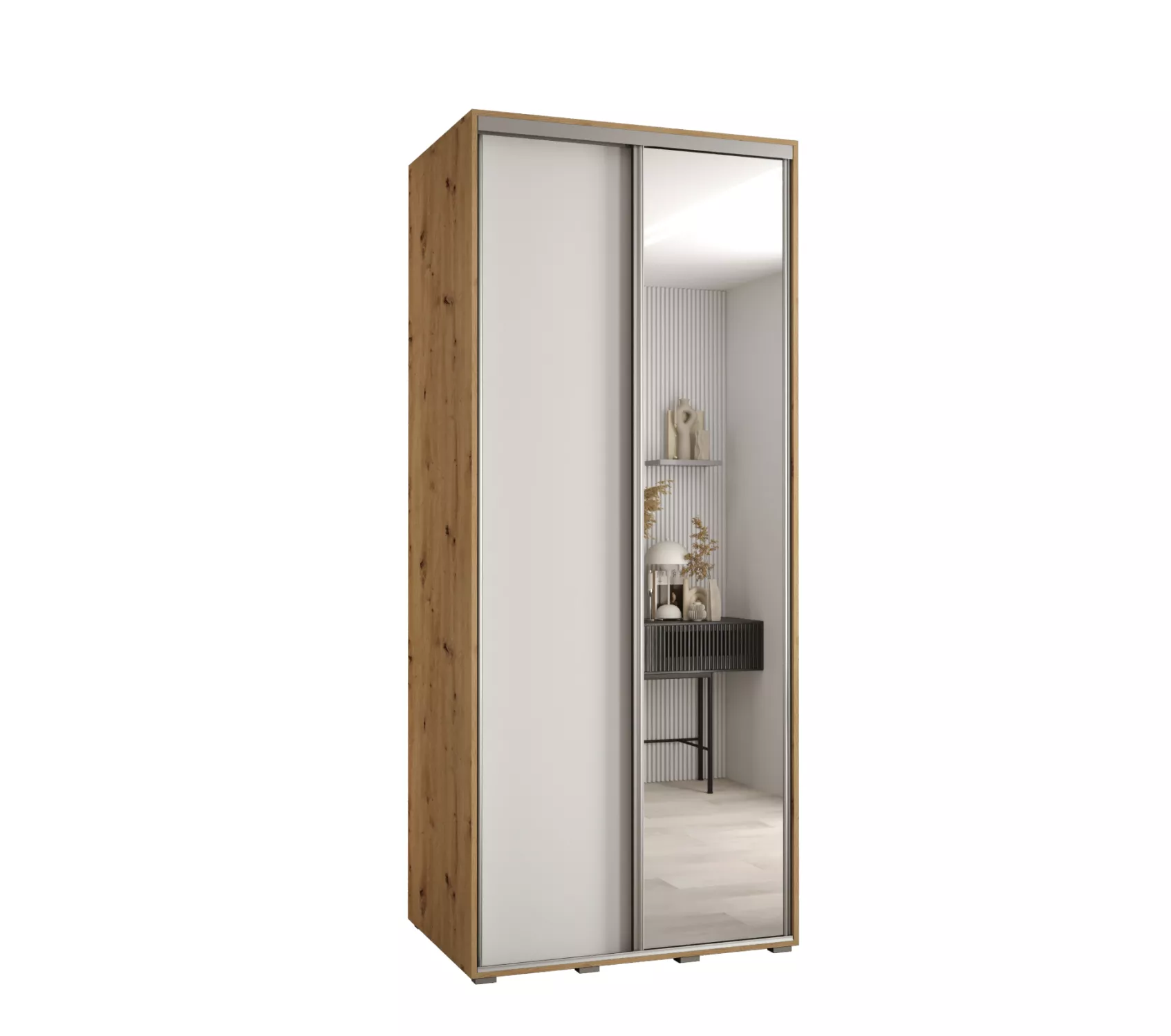Šatní skříň YVONA 3 - 110/60 cm, dub artisan / bílá / stříbrná