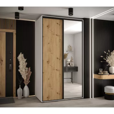 Šatní skříň YVONA 3 - 130/60 cm, bílá / dub artisan / černá