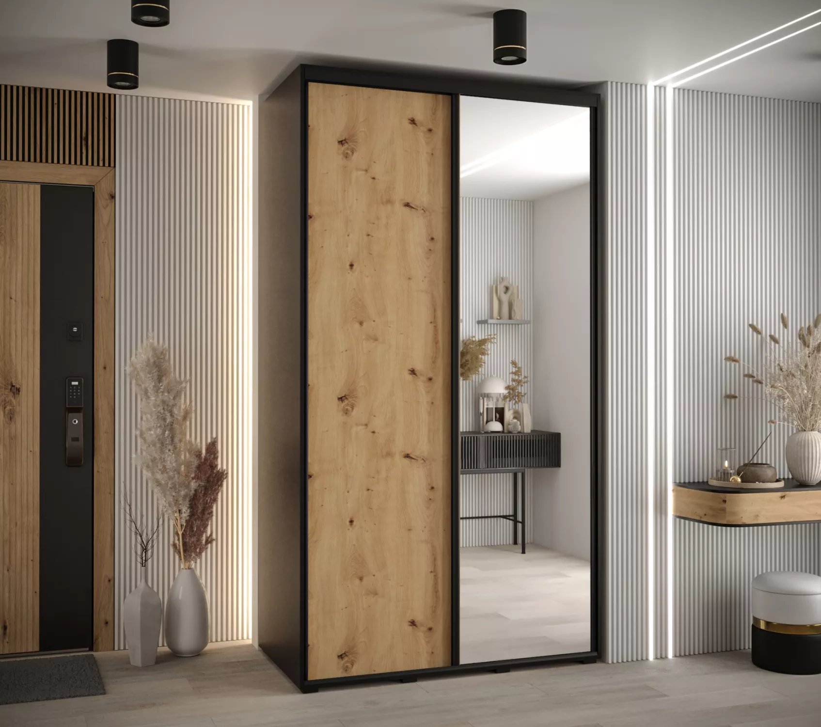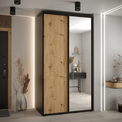 Šatní skříň YVONA 3 - 130/60 cm, černá / dub artisan / černá