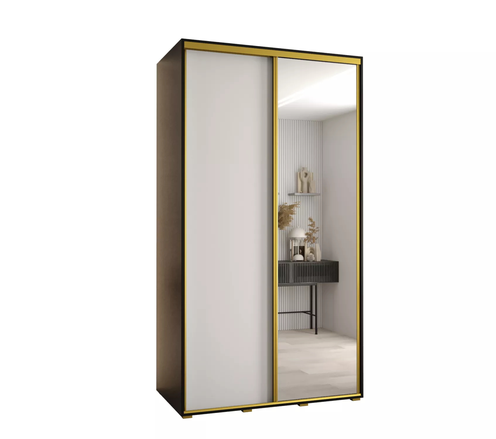 Šatní skříň YVONA 3 - 130/60 cm, černá / bílá / zlatá