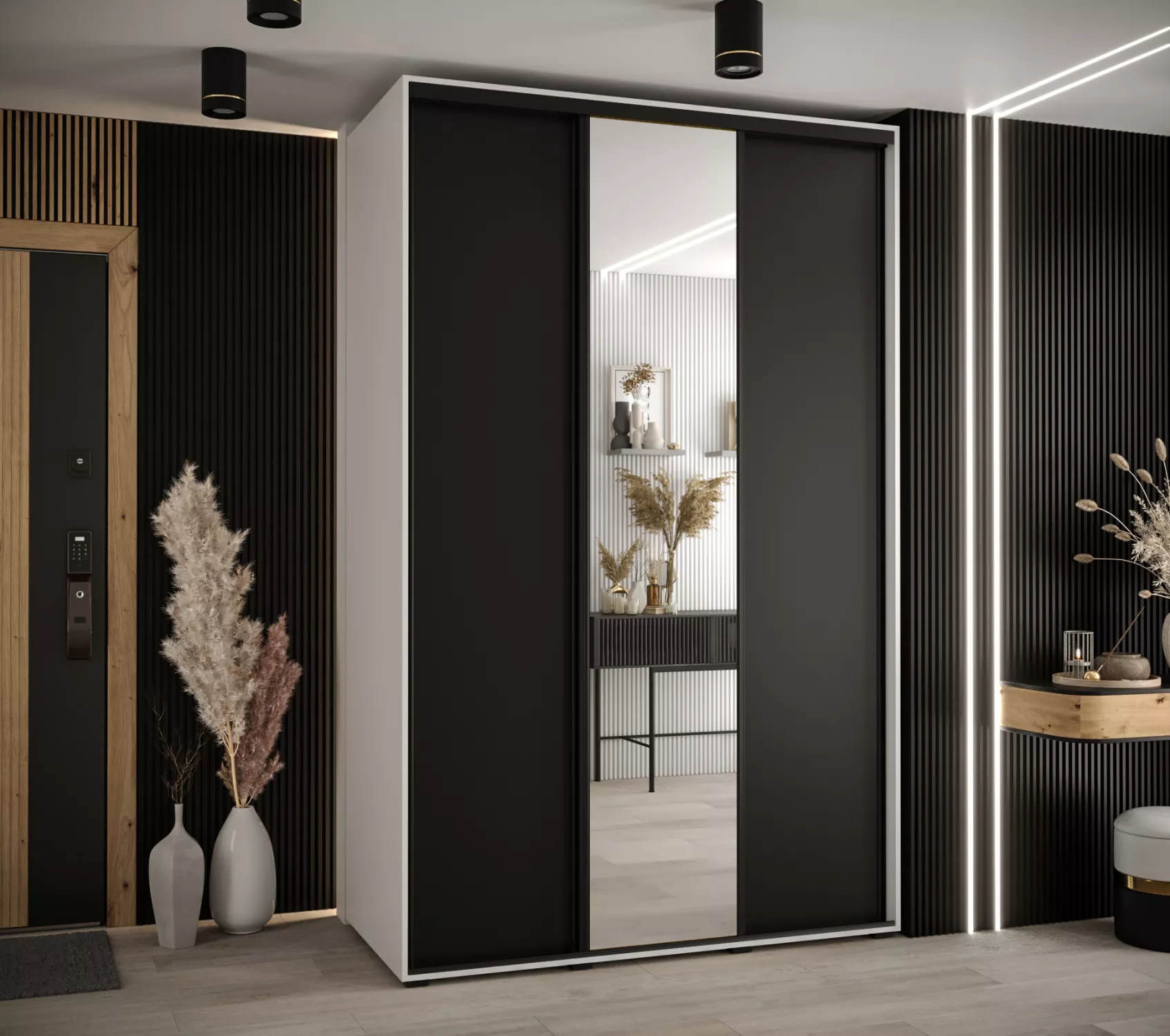 Šatní skříň YVONA 3 - 150/60 cm, bílá / černá / černá
