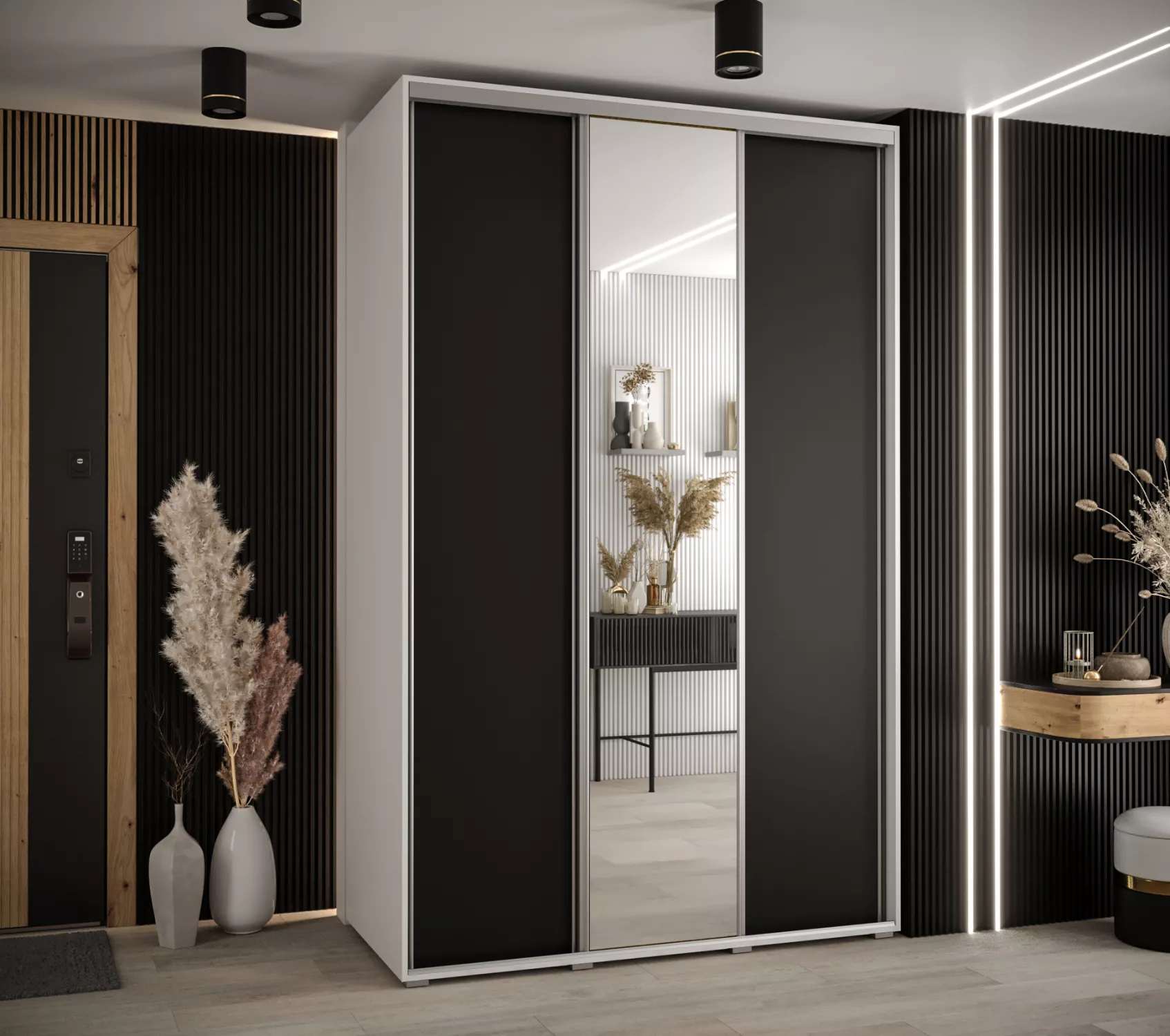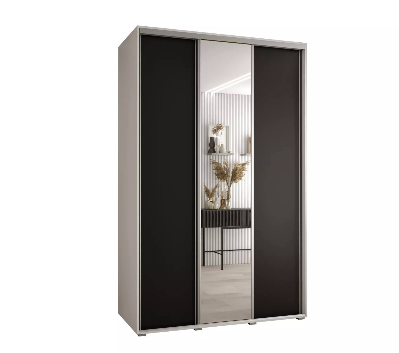Šatní skříň YVONA 3 - 150/60 cm, bílá / černá / stříbrná