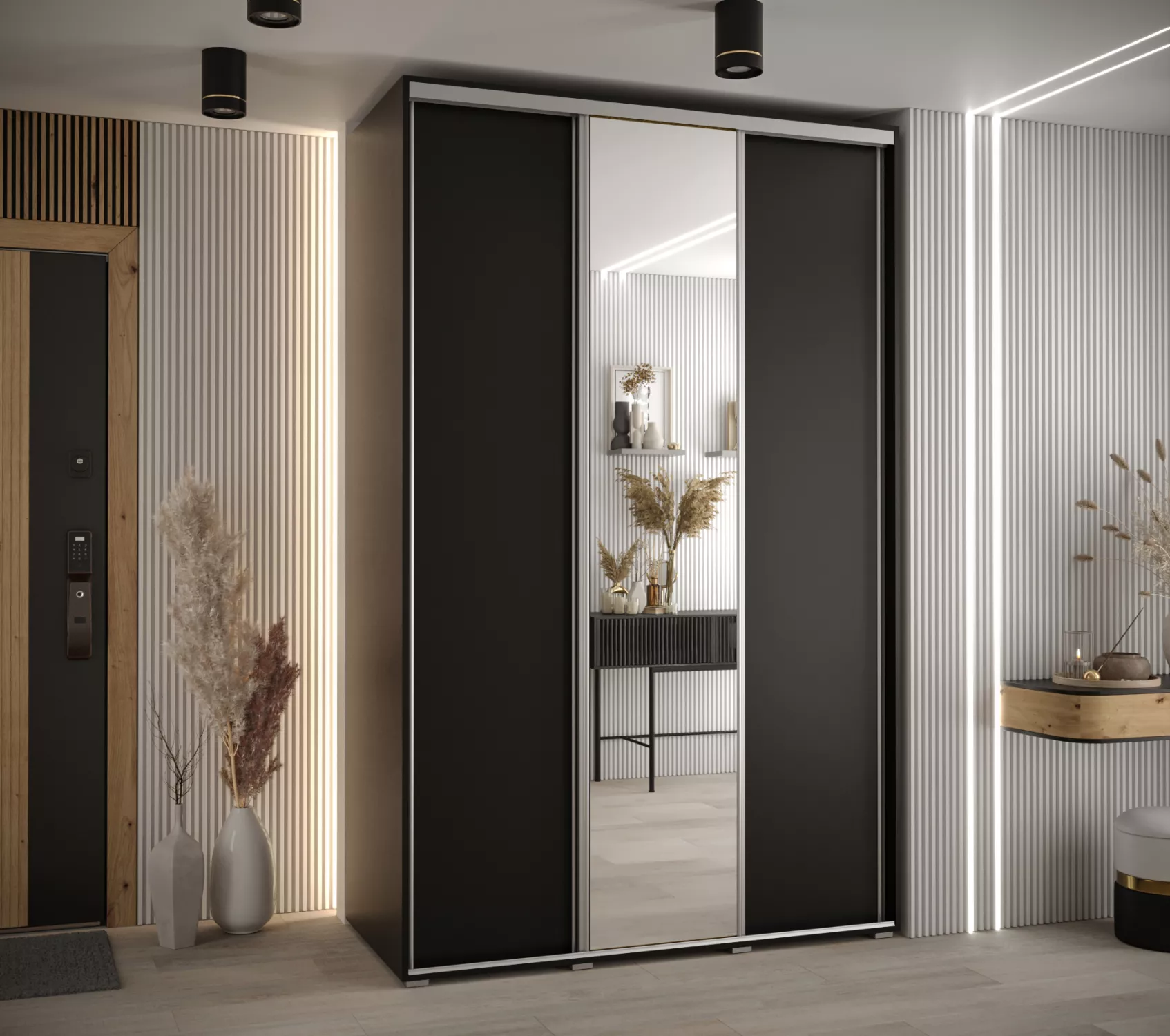 Šatní skříň YVONA 3 - 150/60 cm, černá / stříbrná