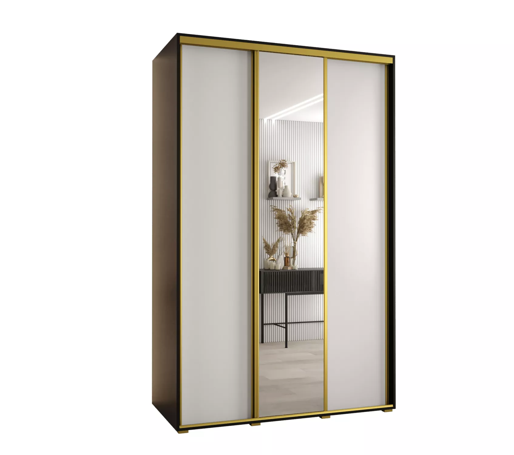 Šatní skříň YVONA 3 - 160/60 cm, černá / bílá / zlatá