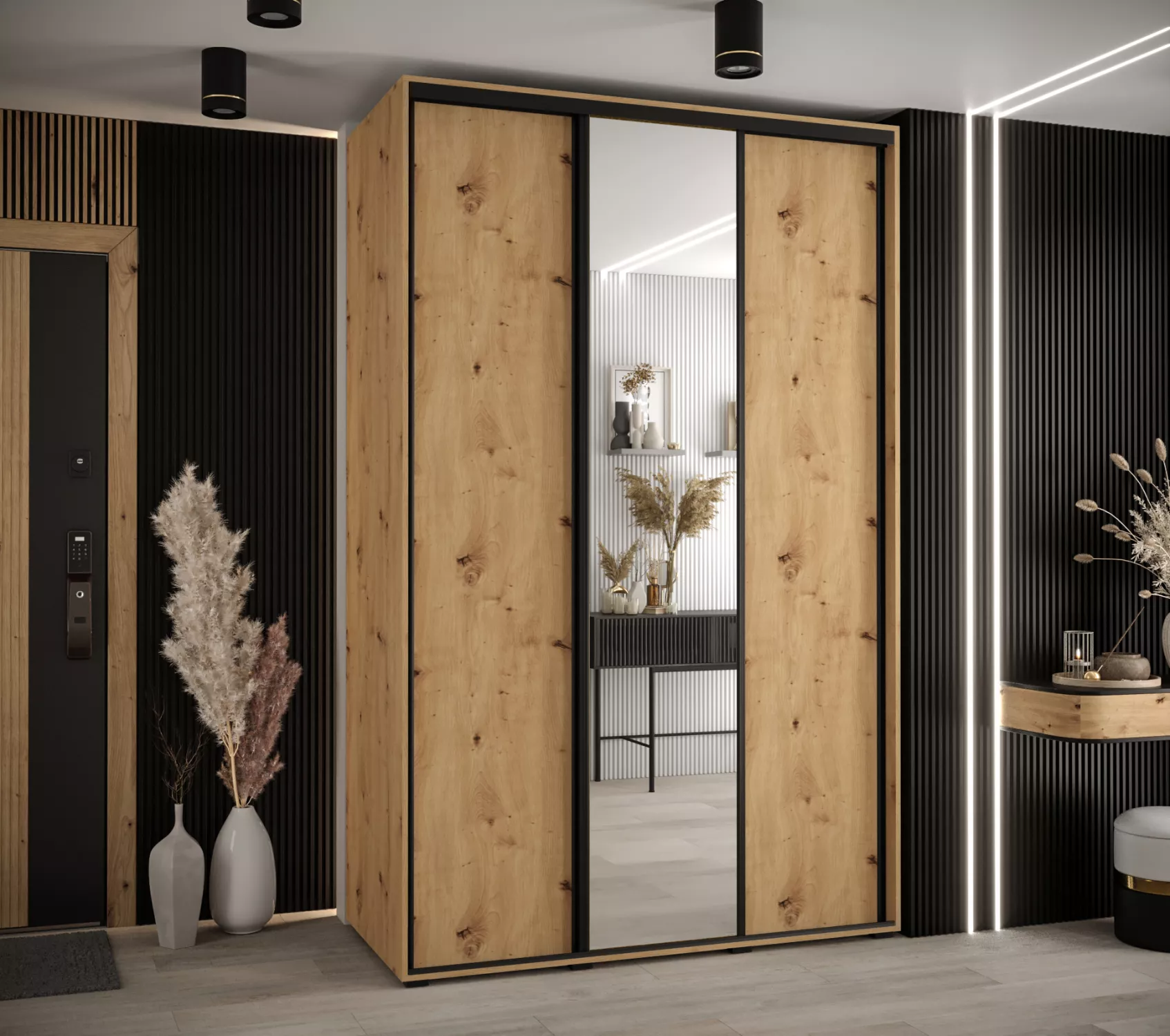 Šatní skříň YVONA 3 - 160/60 cm, dub artisan / černá