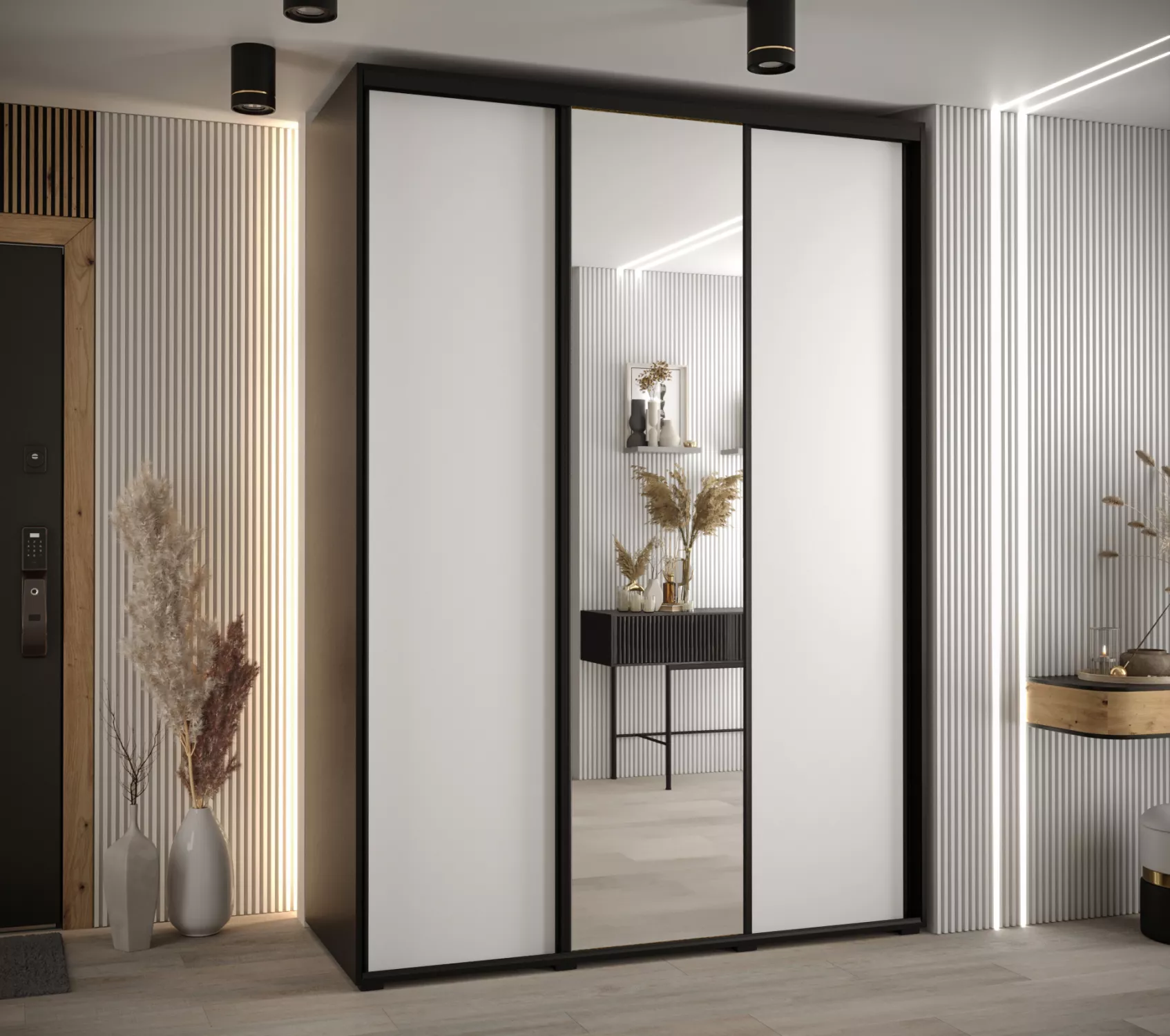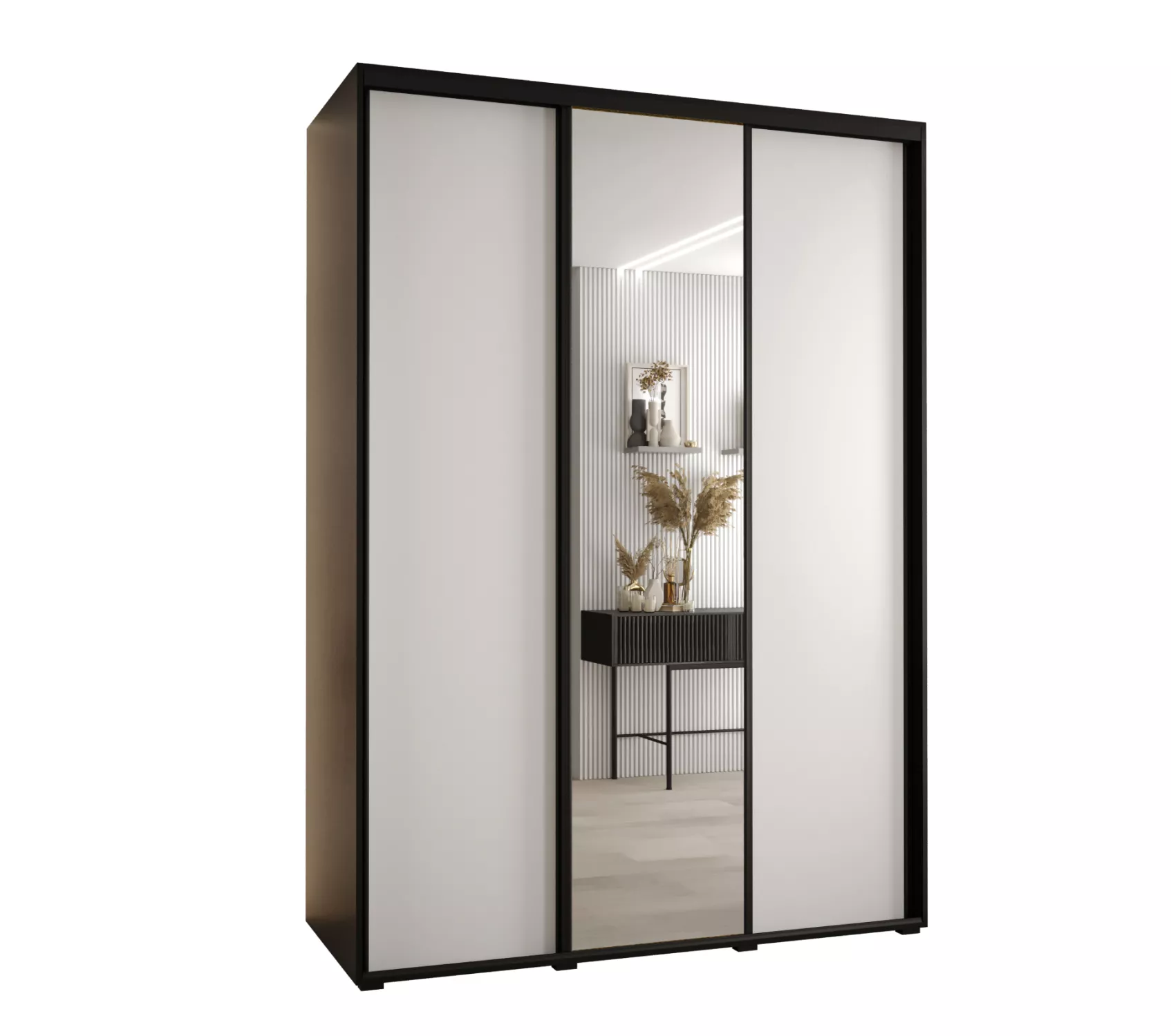 Šatní skříň YVONA 3 - 180/60 cm, černá / bílá / černá