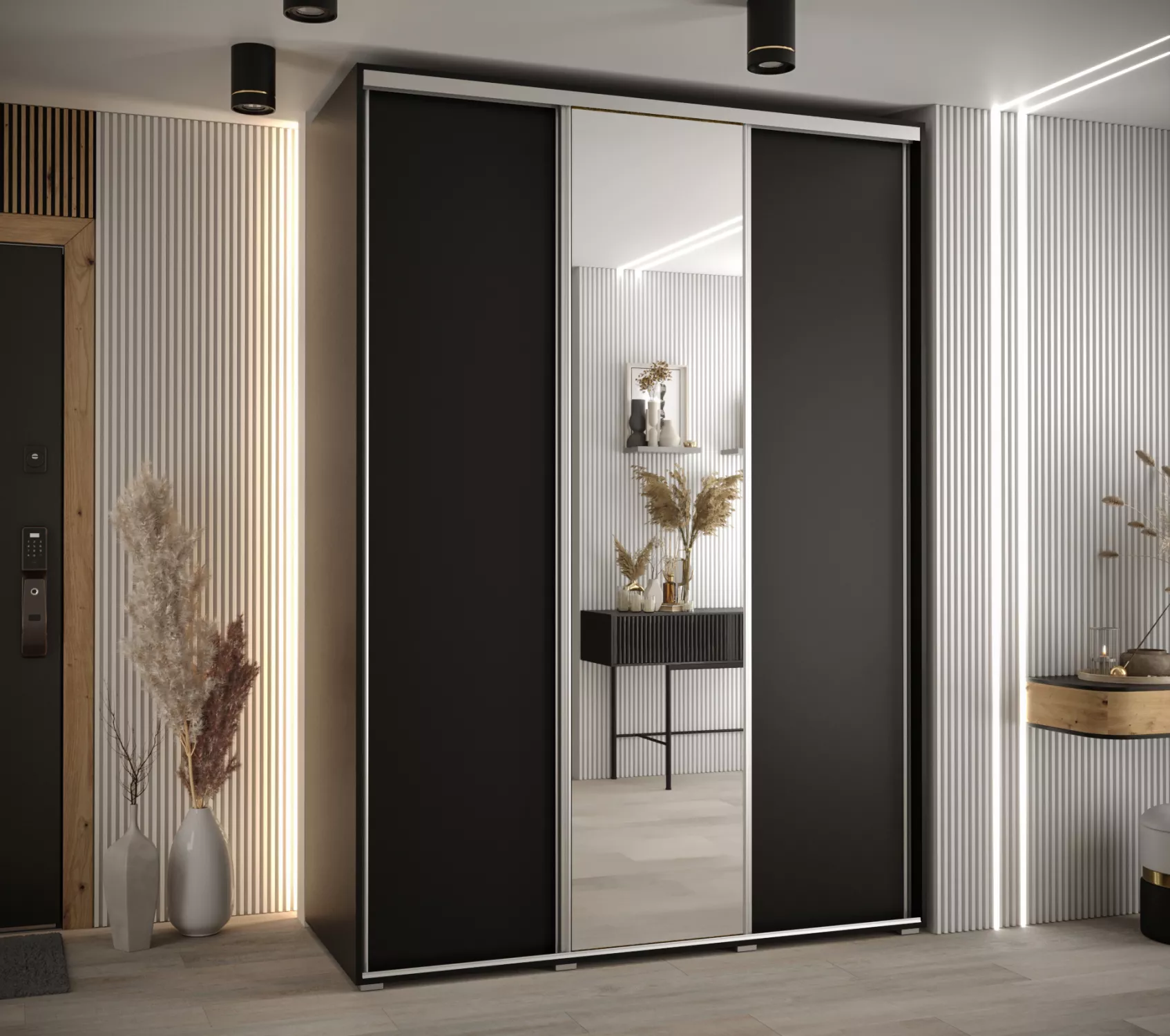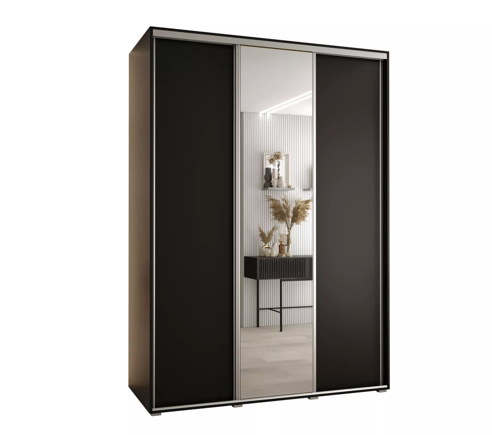 Šatní skříň YVONA 3 - 180/60 cm, černá / stříbrná