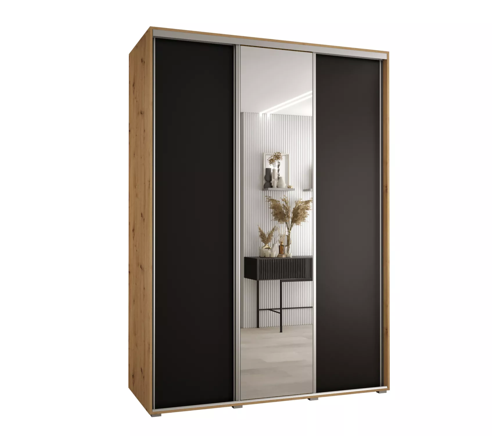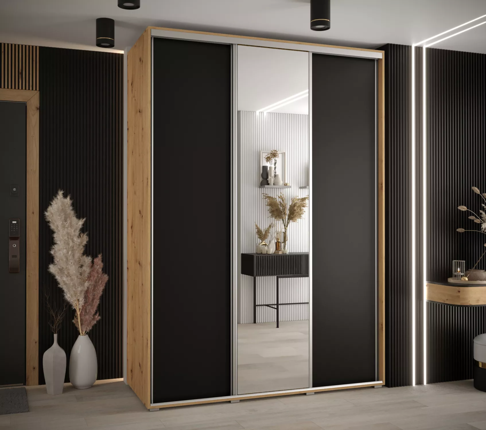 Šatní skříň YVONA 3 - 180/60 cm, dub artisan / černá / stříbrná
