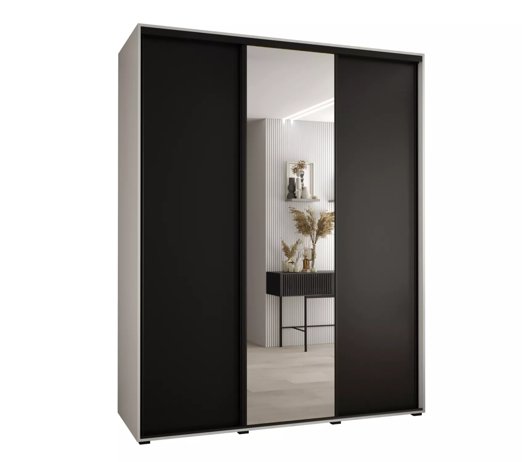 Šatní skříň YVONA 3 - 190/60 cm, bílá / černá / černá