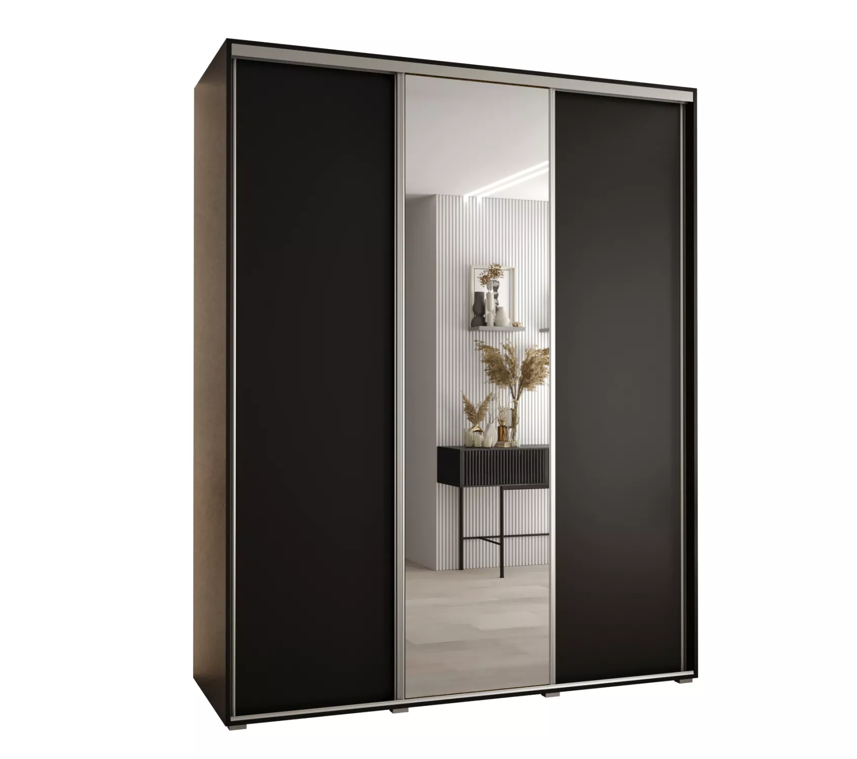 Šatní skříň YVONA 3 - 190/60 cm, černá / stříbrná