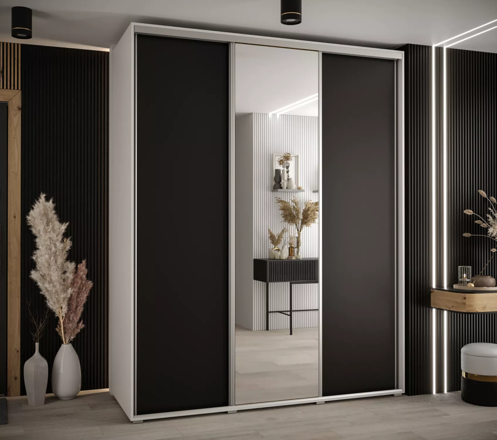 Šatní skříň YVONA 3 - 200/60 cm, bílá / černá / stříbrná