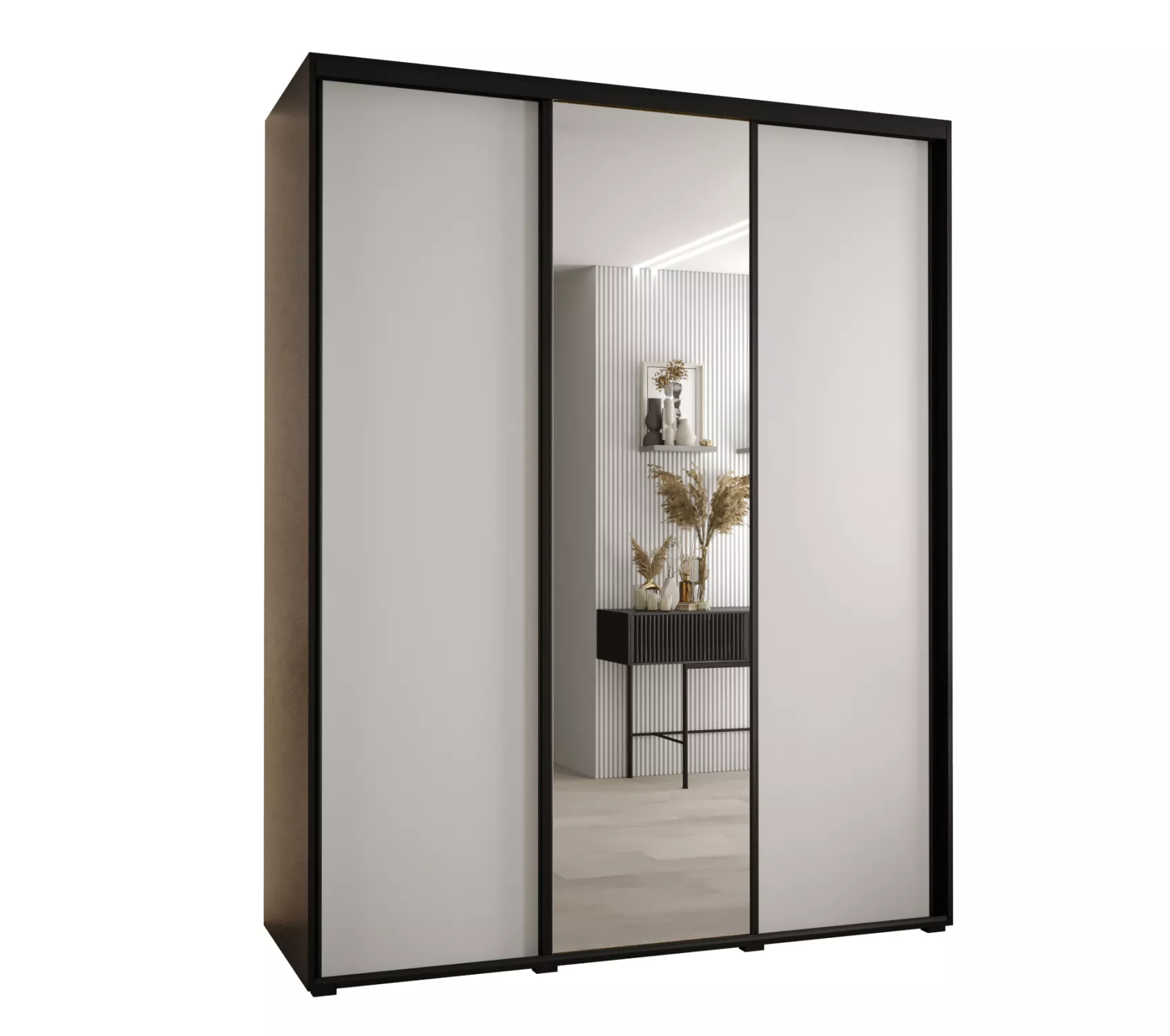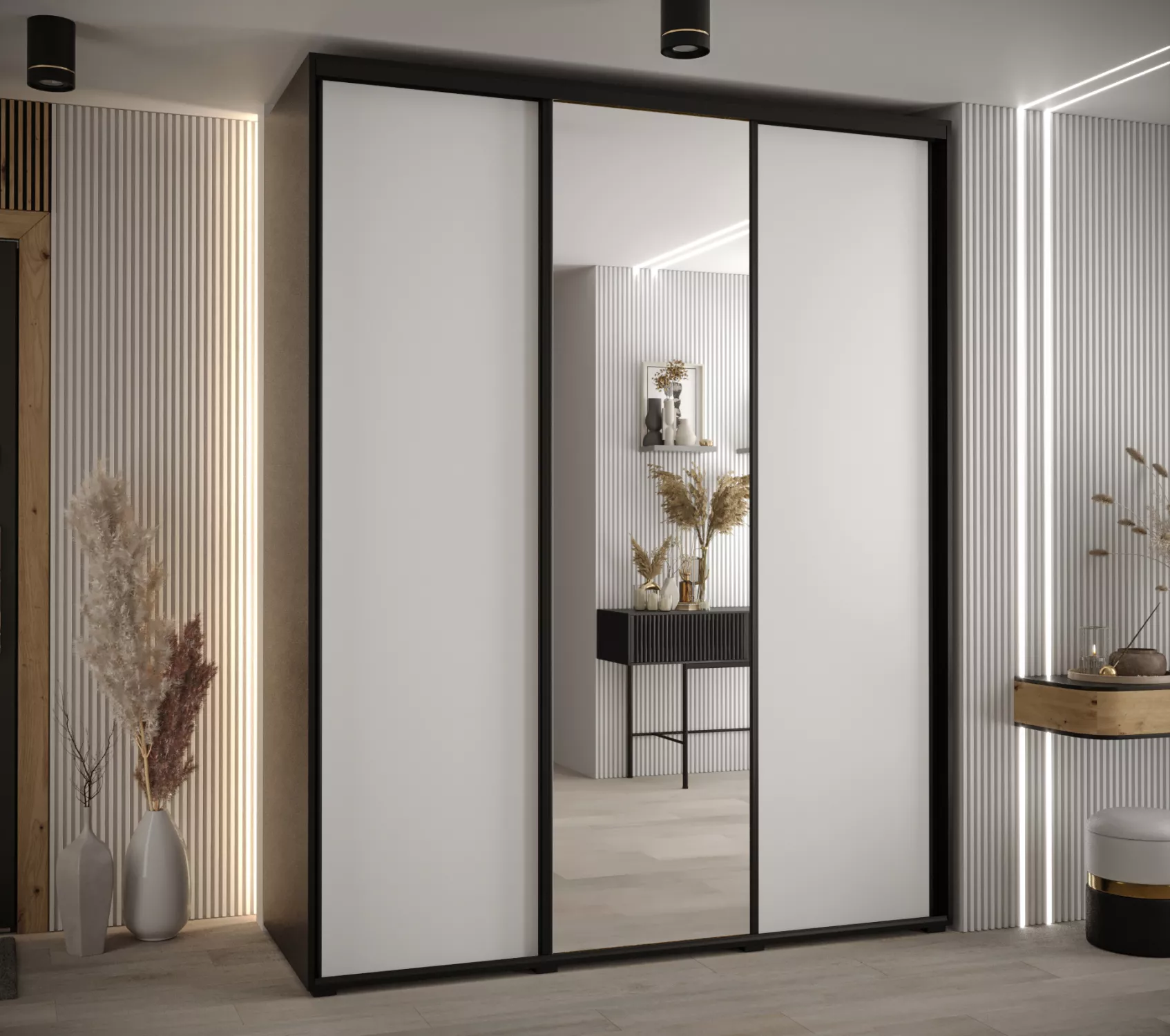 Šatní skříň YVONA 3 - 200/60 cm, černá / bílá / černá
