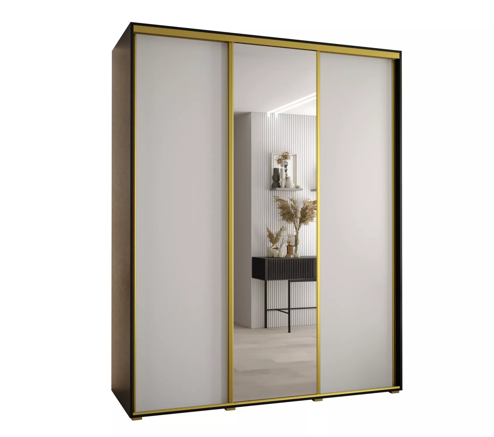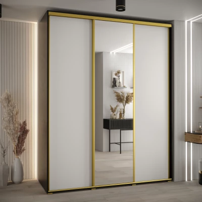 Šatní skříň YVONA 3 - 200/60 cm, černá / bílá / zlatá