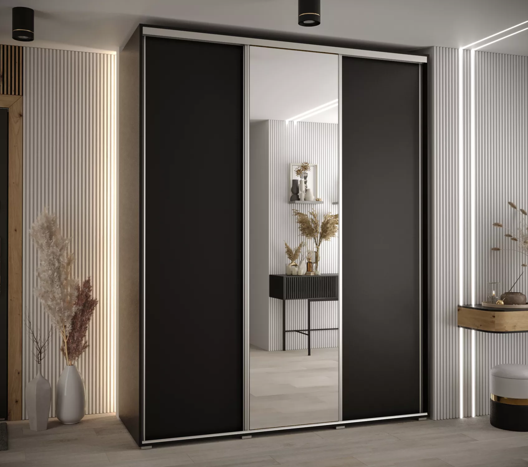 Šatní skříň YVONA 3 - 200/60 cm, černá / stříbrná