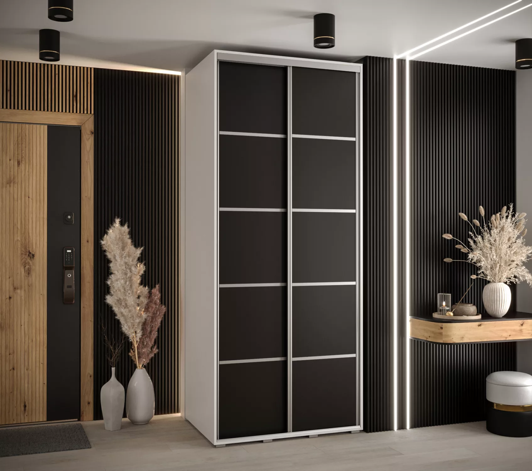 Šatní skříň YVONA 4 - 100/60 cm, bílá / černá / stříbrná
