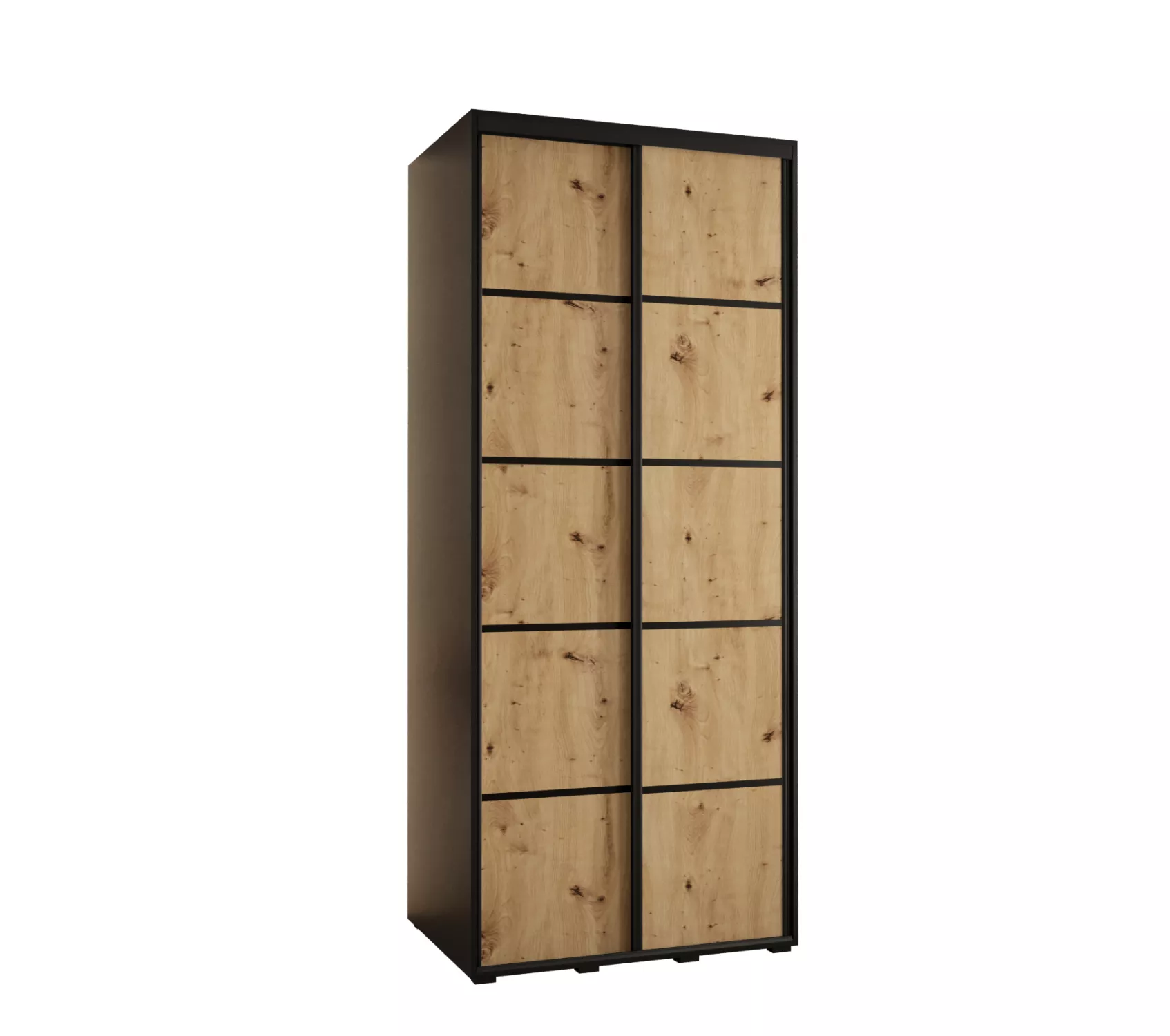 Šatní skříň YVONA 4 - 100/60 cm, černá / dub artisan / černá