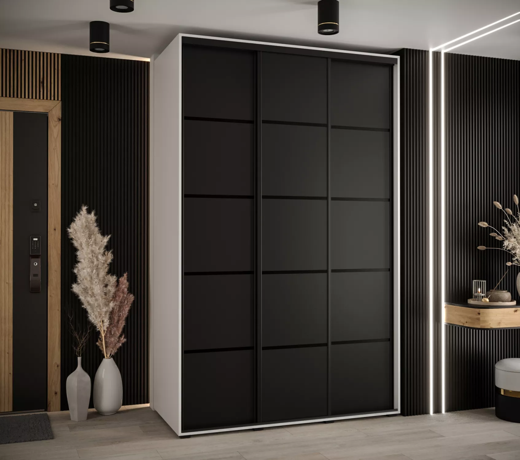 Šatní skříň YVONA 4 - 160/60 cm, bílá / černá / černá