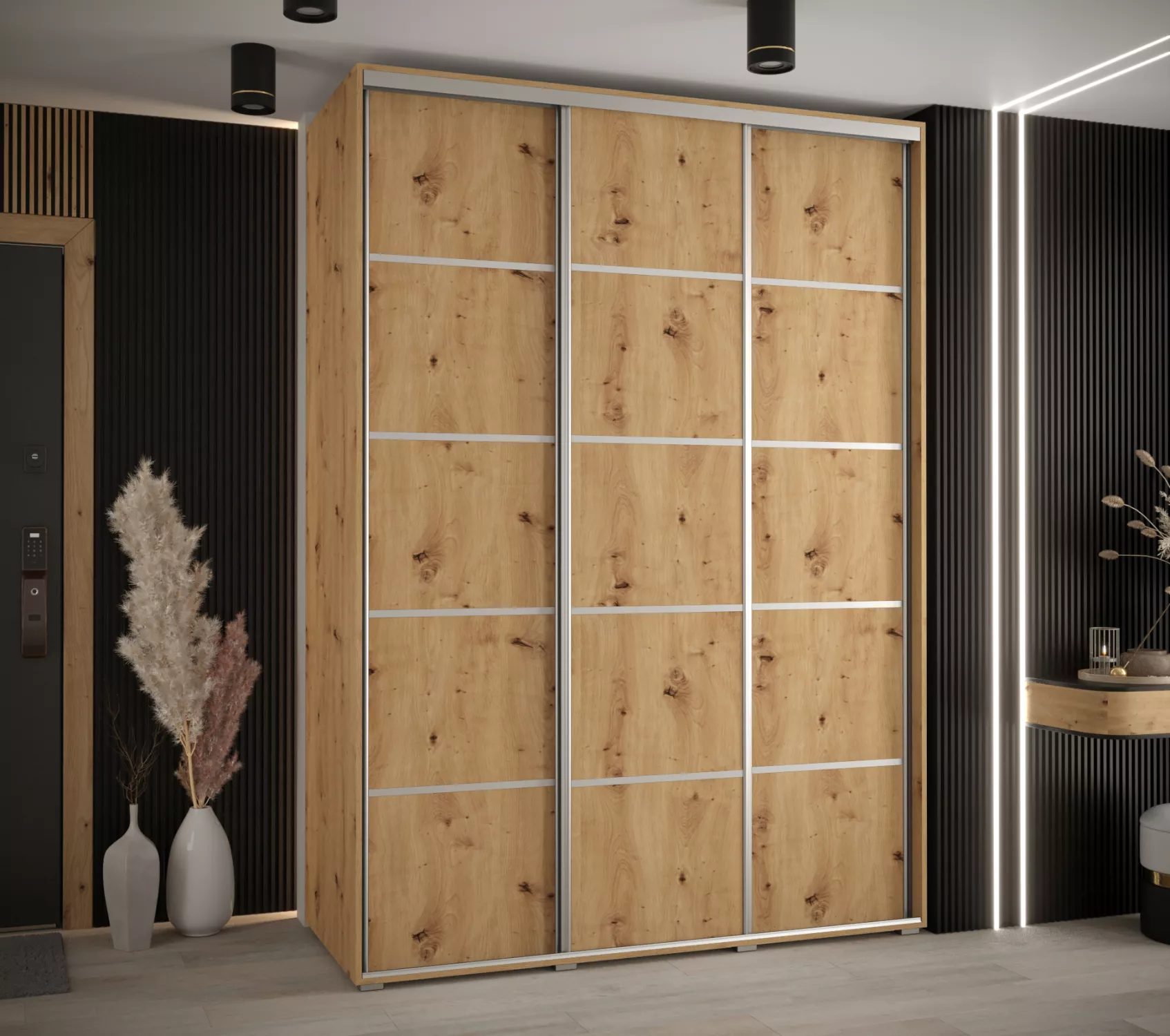 Šatní skříň YVONA 4 - 170/60 cm, dub artisan / stříbrná