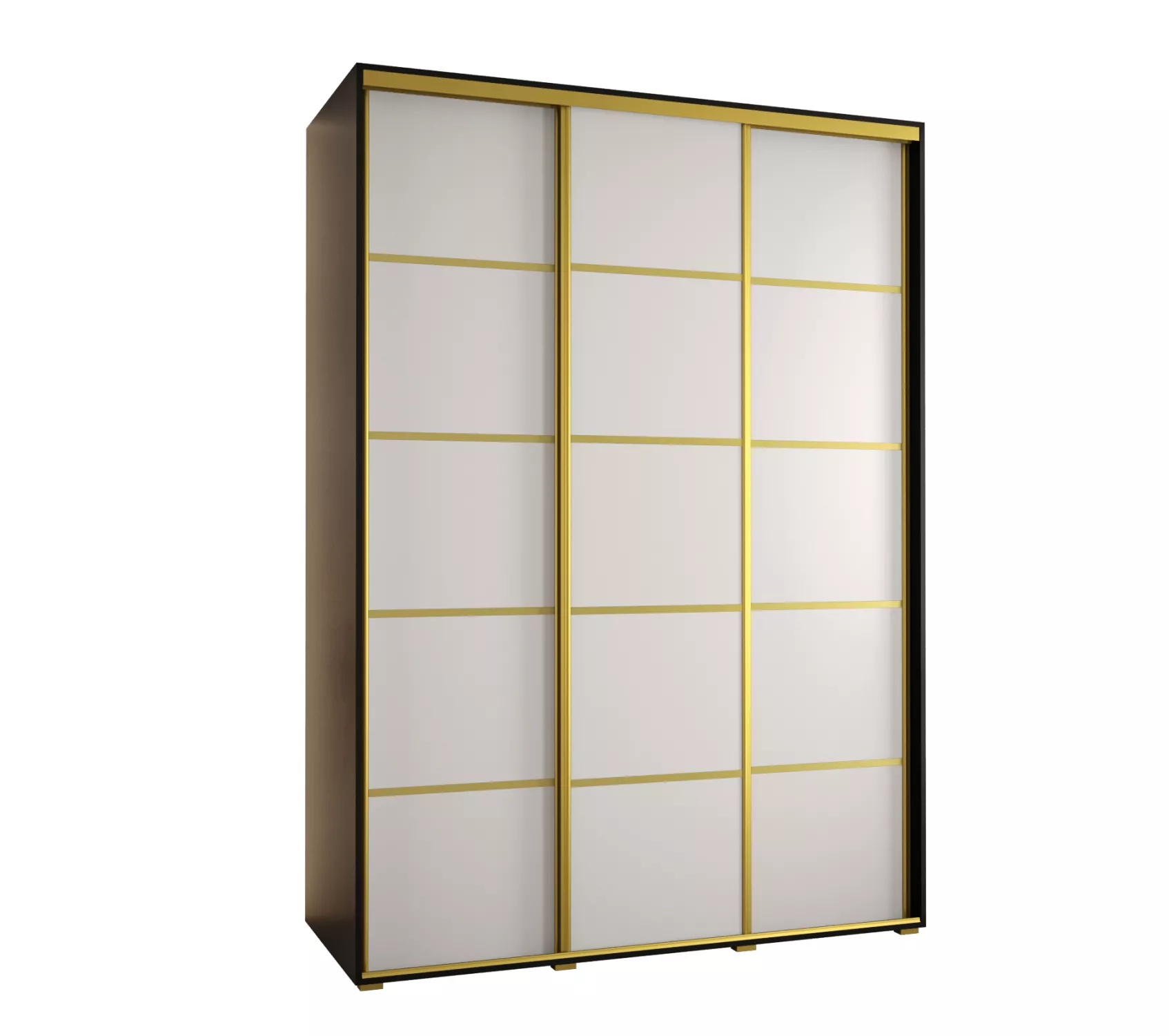 Šatní skříň YVONA 4 - 180/60 cm, černá / bílá / zlatá