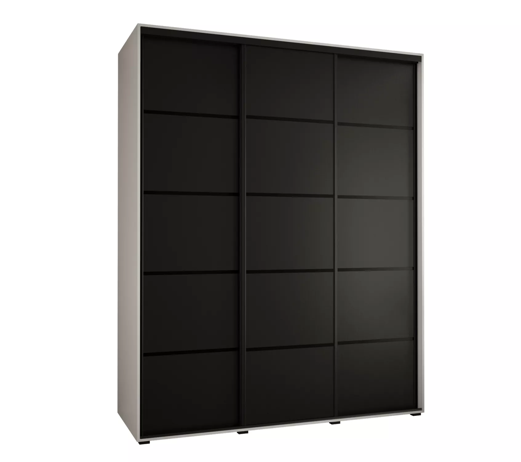 Šatní skříň YVONA 4 - 200/60 cm, bílá / černá / černá