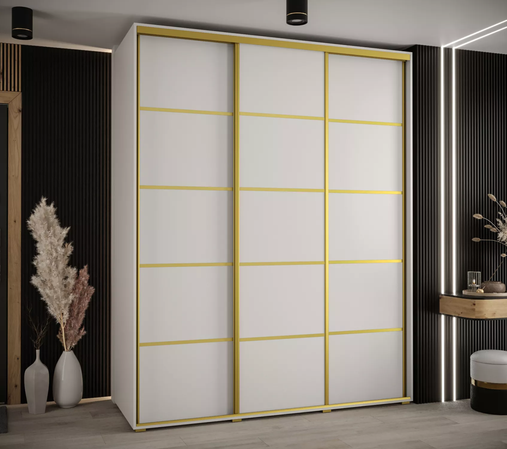 Šatní skříň YVONA 4 - 200/60 cm, bílá / zlatá