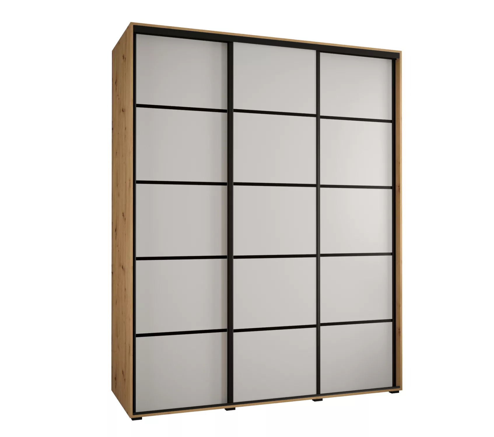 Šatní skříň YVONA 4 - 200/60 cm, dub artisan / bílá / černá