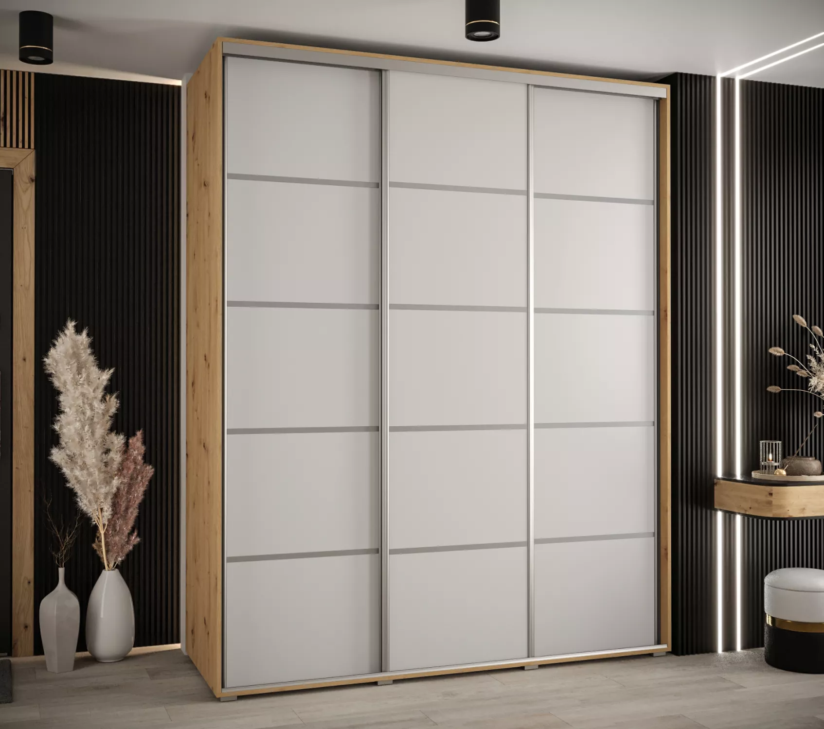 Šatní skříň YVONA upoutá pozornost každého, kdo hledá funkční a stylové řešení do své ložnice. Skříň je vybavena posuvnými dveřmi pro snadnější manipulaci.