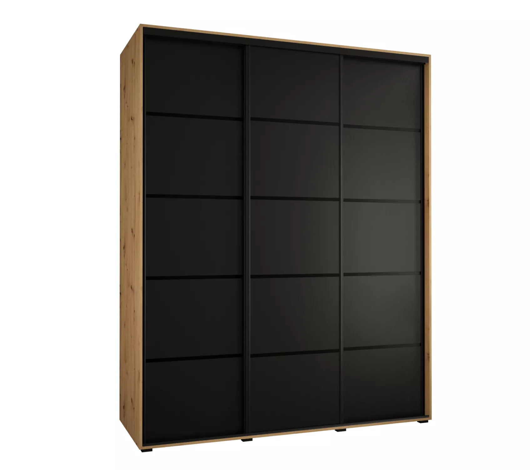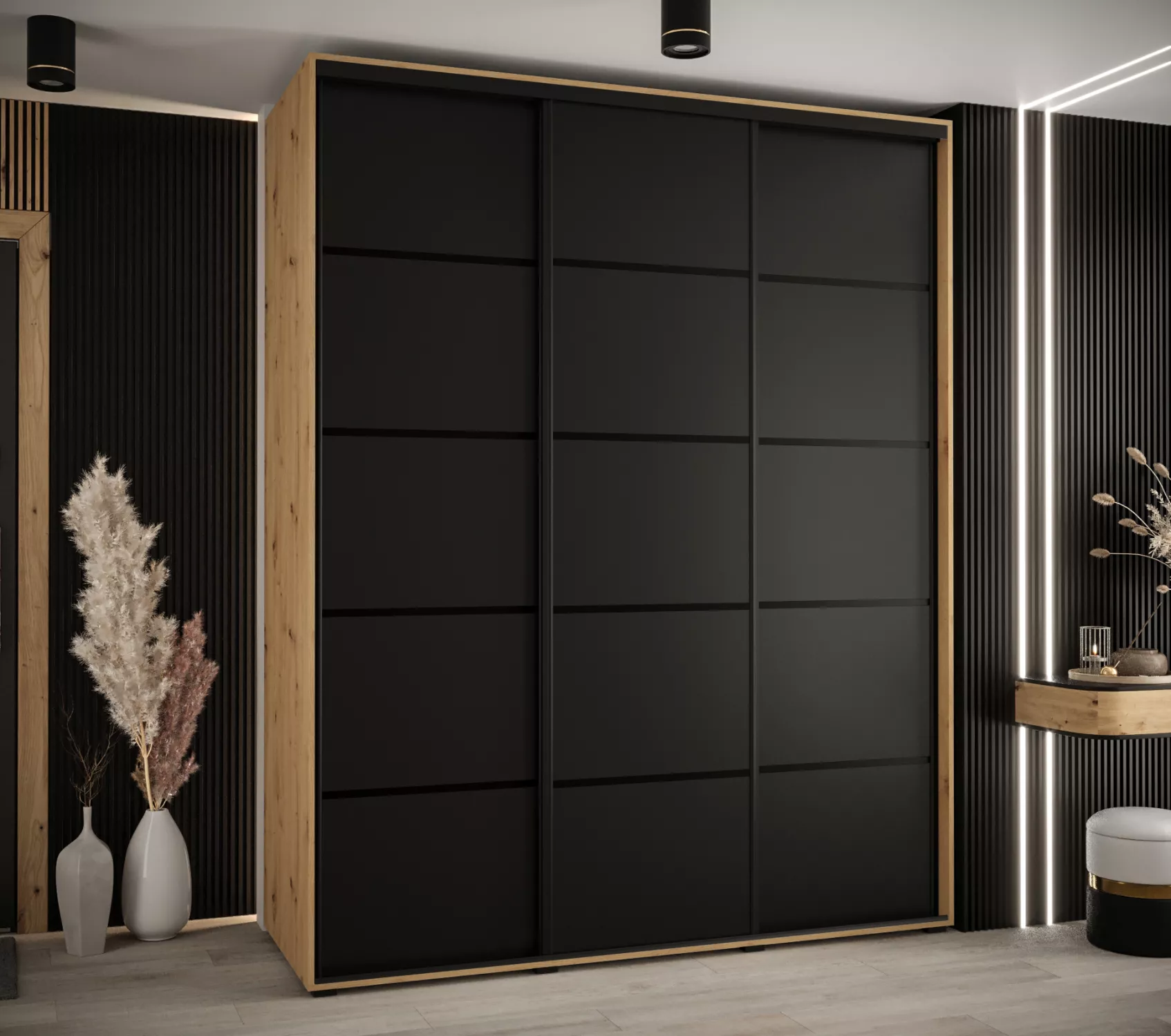Šatní skříň YVONA 4 - 200/60 cm, dub artisan / černá / černá