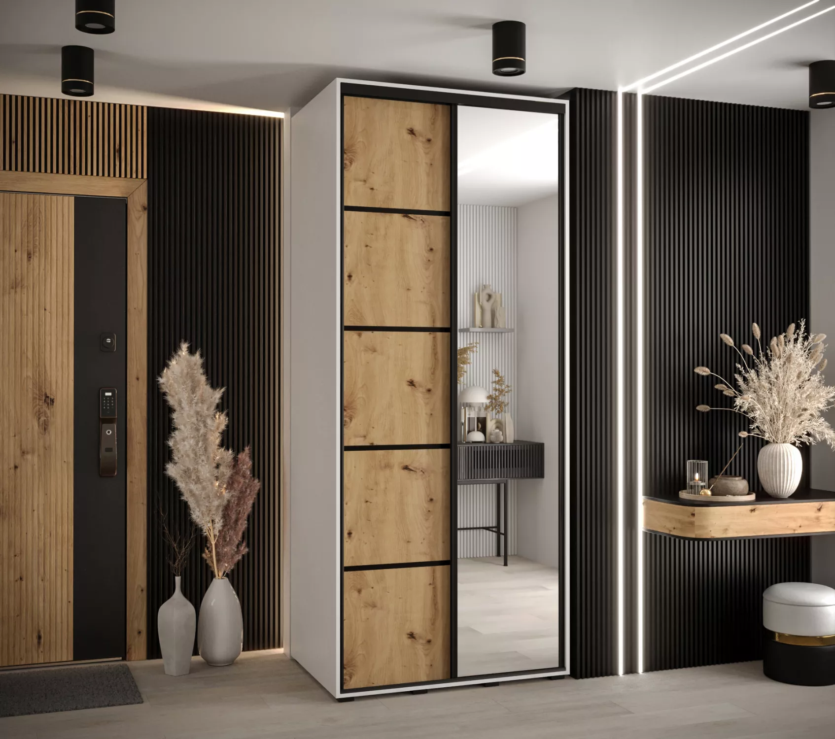 Šatní skříň YVONA 5 - 120/60 cm, bílá / dub artisan / černá
