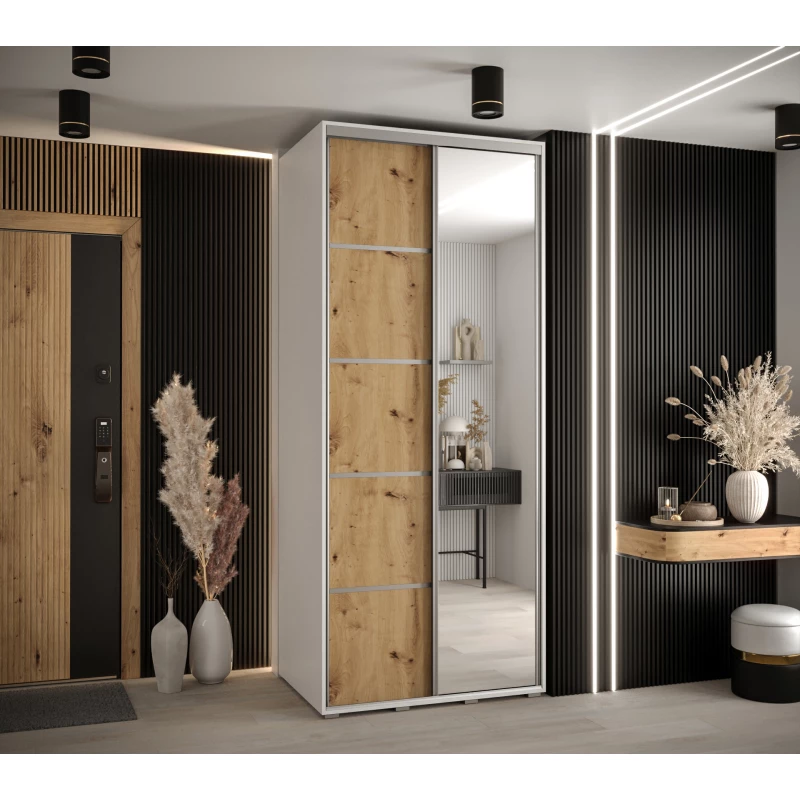 Šatní skříň YVONA 5 - 120/60 cm, bílá / dub artisan / stříbrná