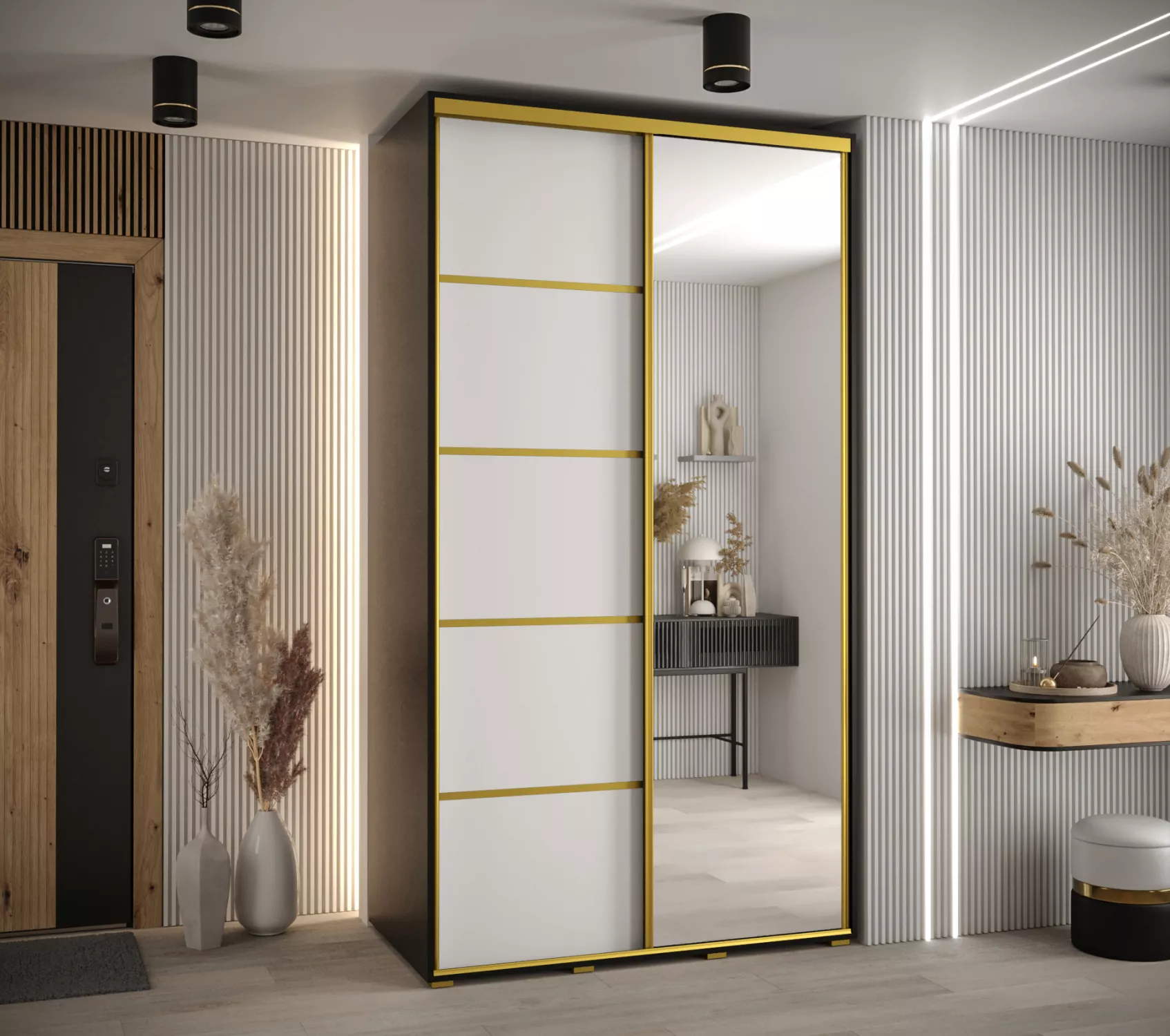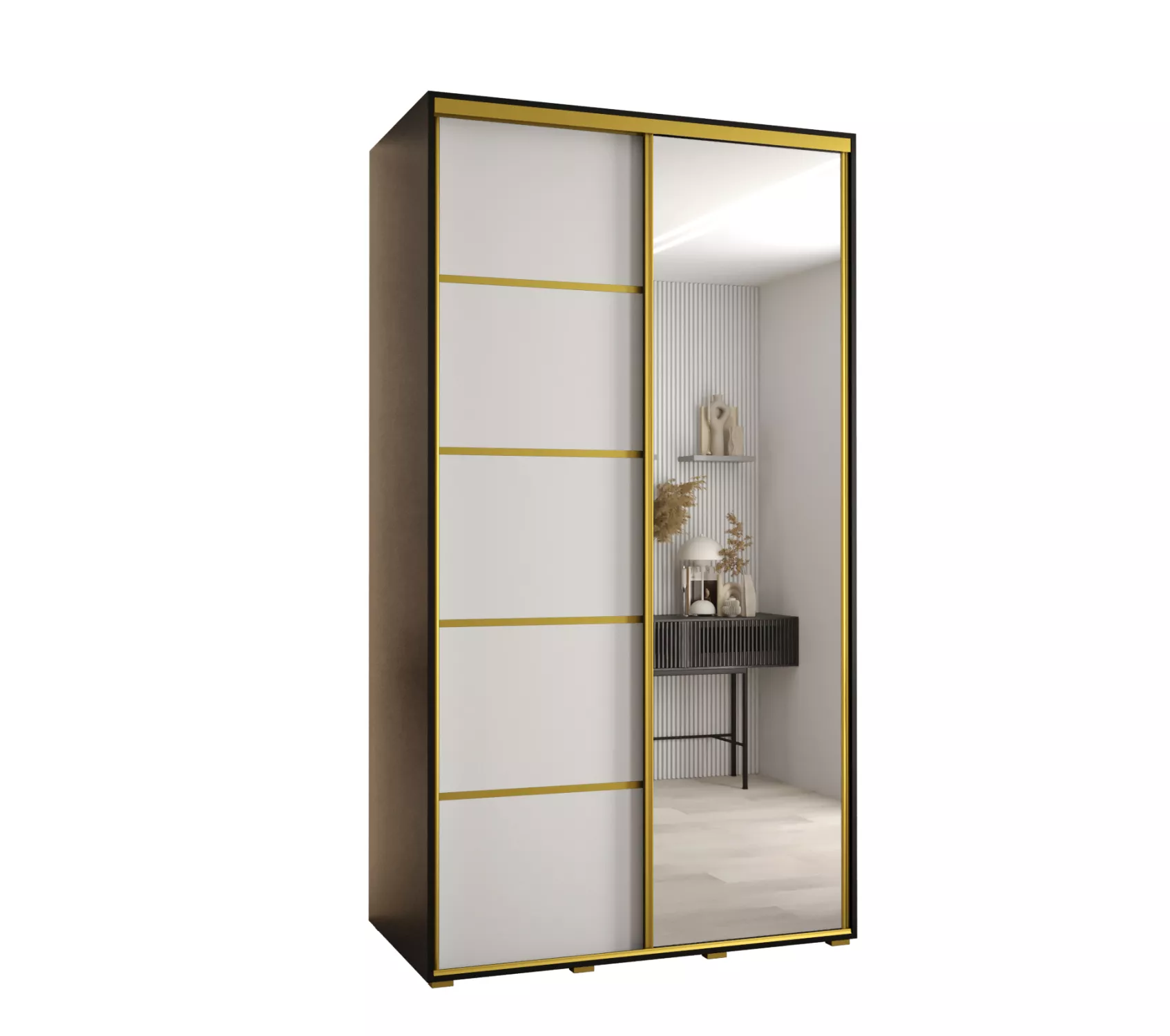 Šatní skříň YVONA 5 - 140/60 cm, černá / bílá / zlatá