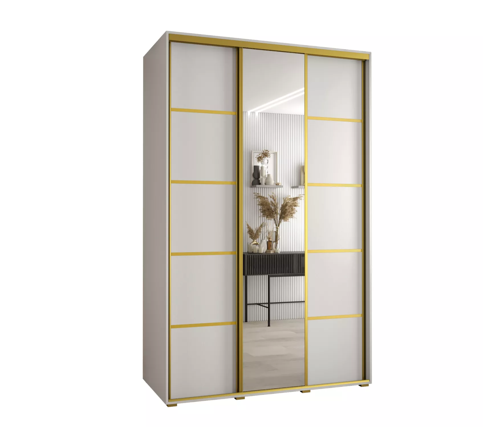Šatní skříň YVONA 5 - 150/60 cm, bílá / zlatá