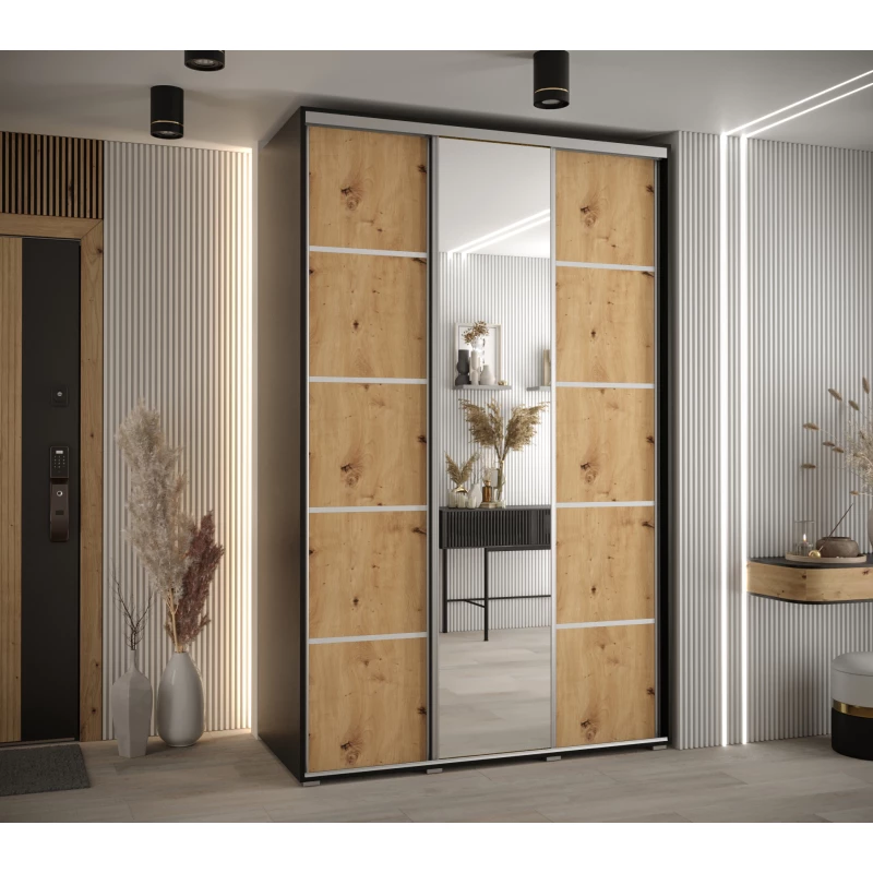 Šatní skříň YVONA 5 - 160/60 cm, černá / dub artisan / stříbrná